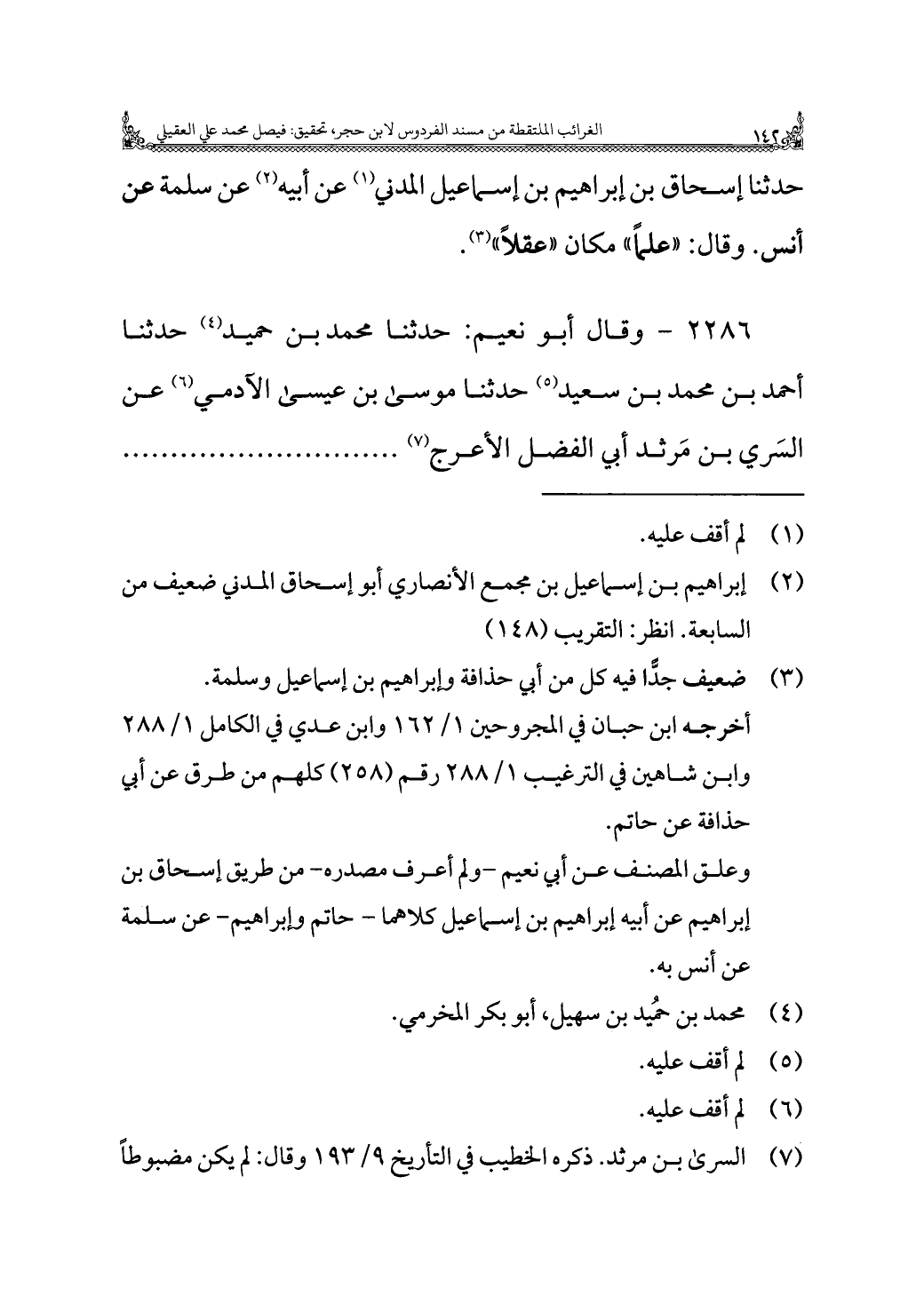 حدثنا إسحاق بن إبراهيم بن إسماعيل المدني (¬١) عن أبيه (¬٢) عن سلمة عن أنس. وقال: "علمًا" مكان "عقلًا" (¬٣).
