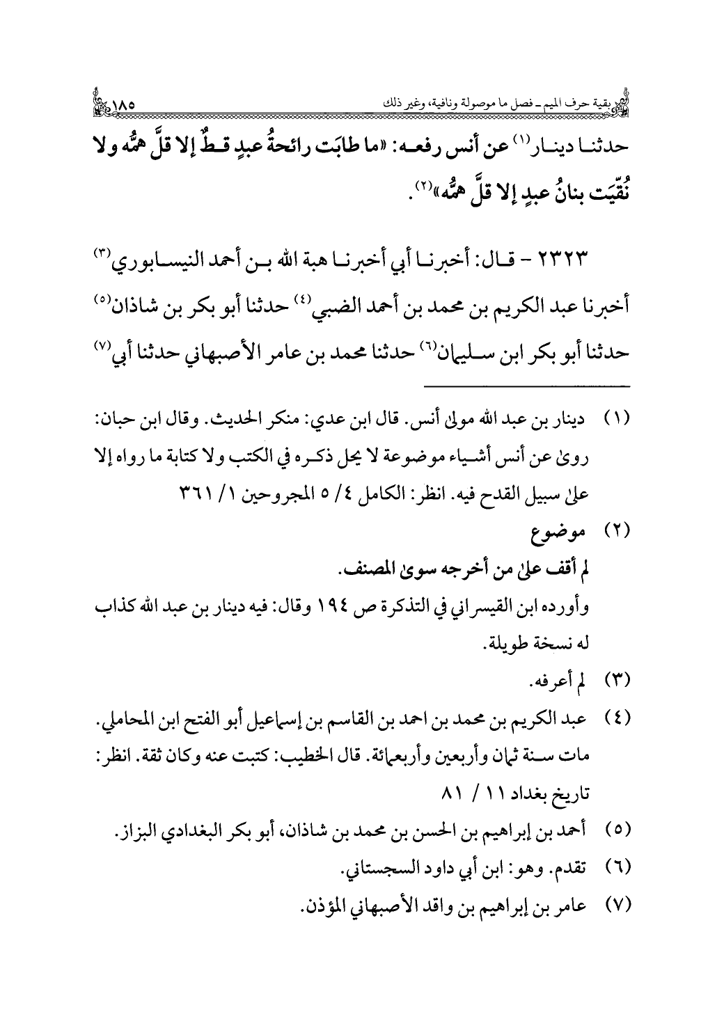 (¬٧) عامر بن إبراهيم بن واقد الأصبهاني المؤذن.
