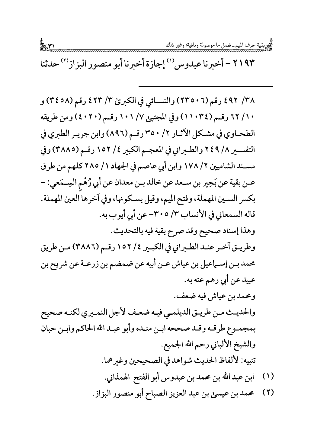 (¬٢) محمد بن عيسى بن عبد العزيز الصباح أبو منصور البزاز.