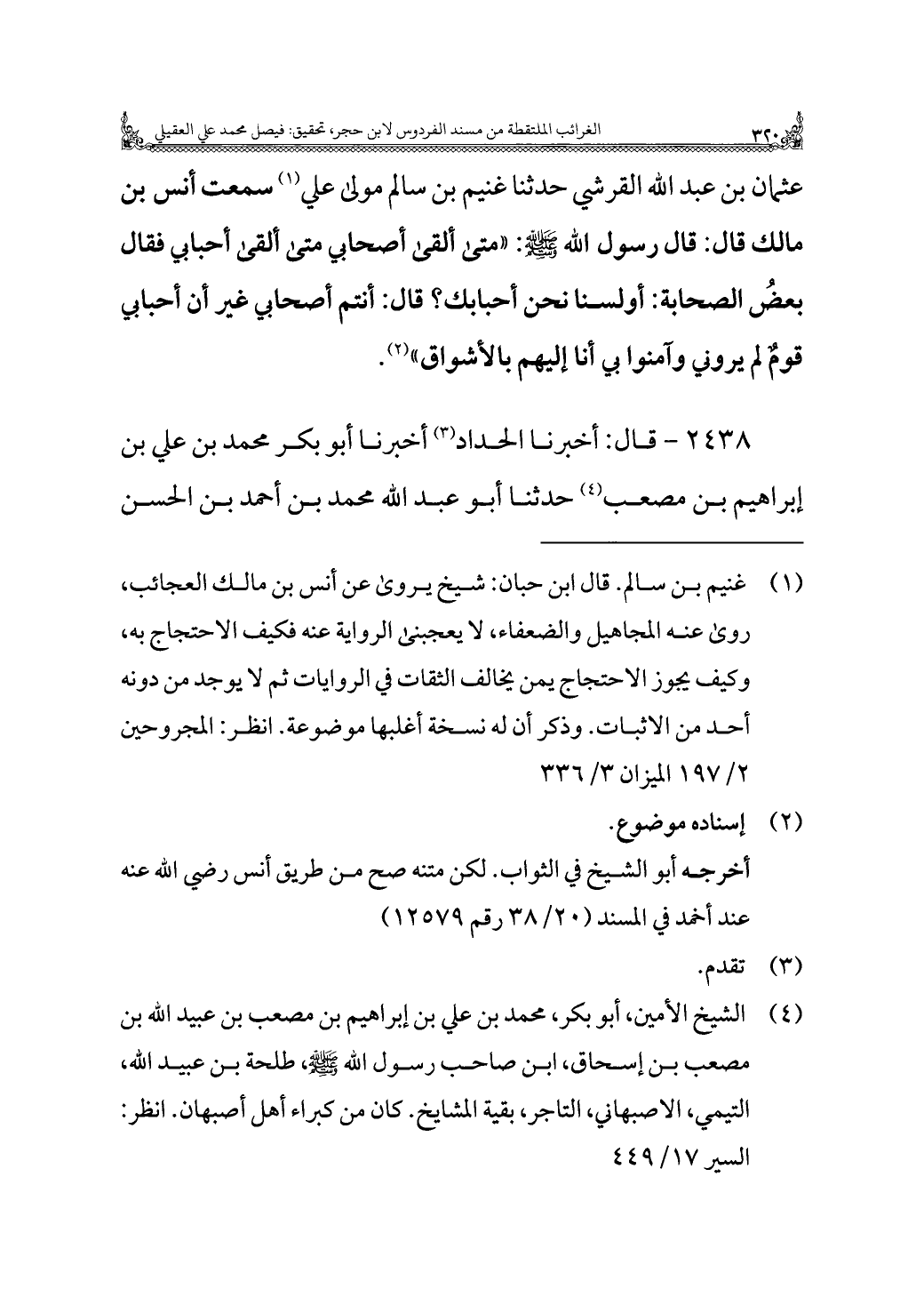 ٢٤٣٨ - قال: أخبرنا الحداد (¬٣) أخبرنا أبو بكر محمد بن علي بن إبراهيم بن مصعب (¬٤) حدثنا أبو عبد الله محمد بن أحمد بن الحسن