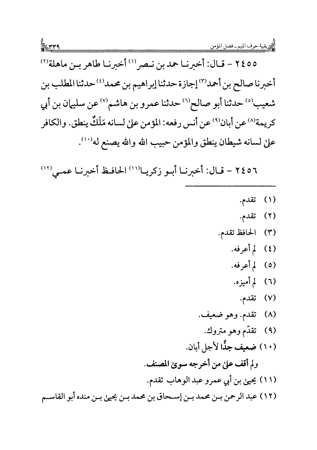 (¬٩) تقدّم وهو متروك.