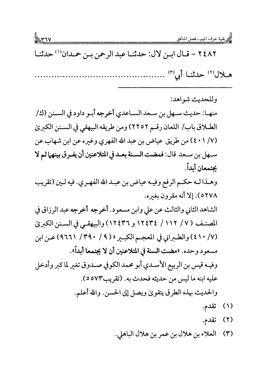 ٢٤٨٢ - قال ابن لال: حدثنا عبد الرحمن بن حمدان (¬١) حدثنا هلال (¬٢) حدثنا أبي (¬٣) ...............................................