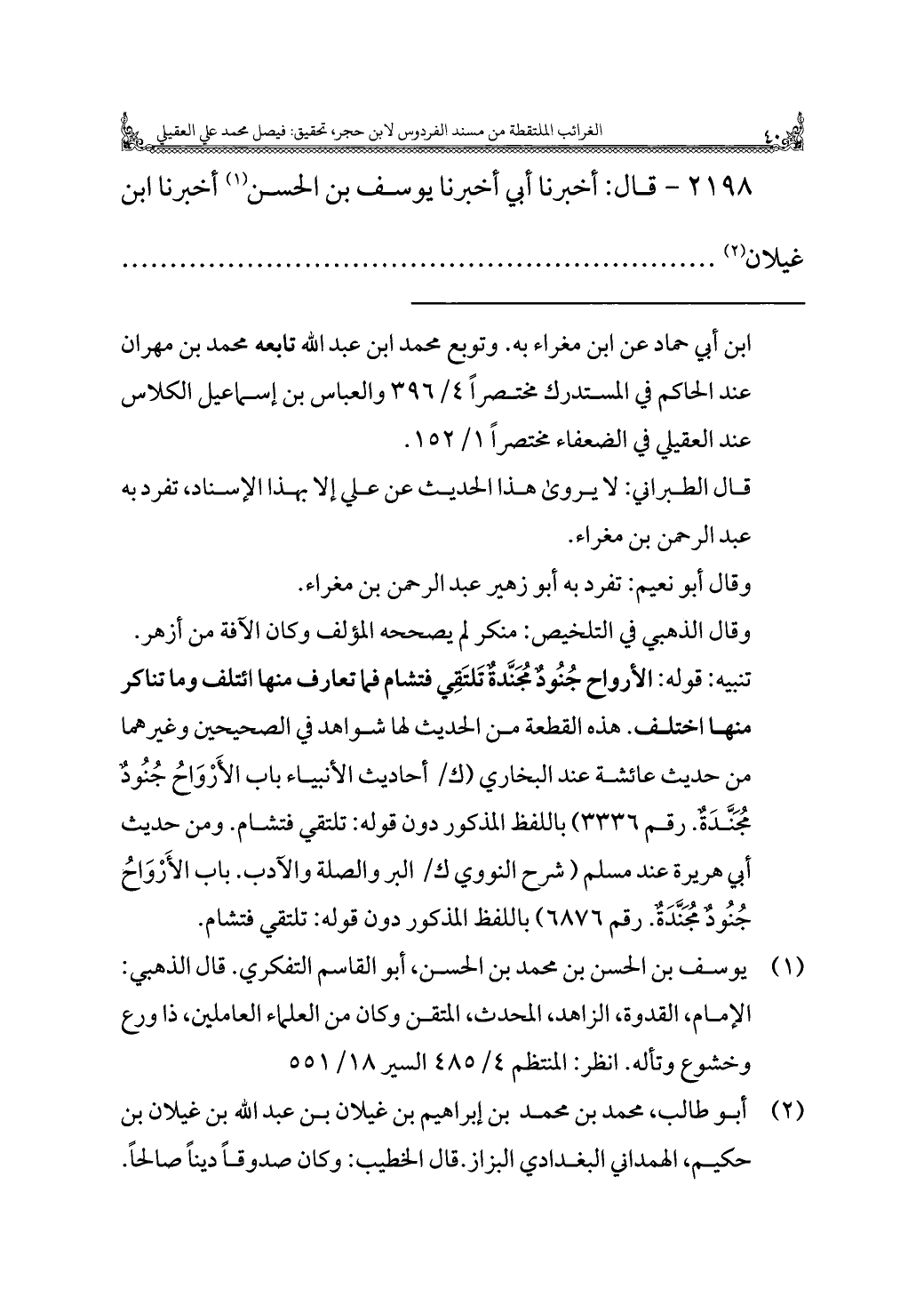 ٢١٩٨ - قال: أخبرنا أبي أخبرنا يوسف بن الحسن (¬١) أخبرنا ابن غيلان (¬٢) ..............................................................