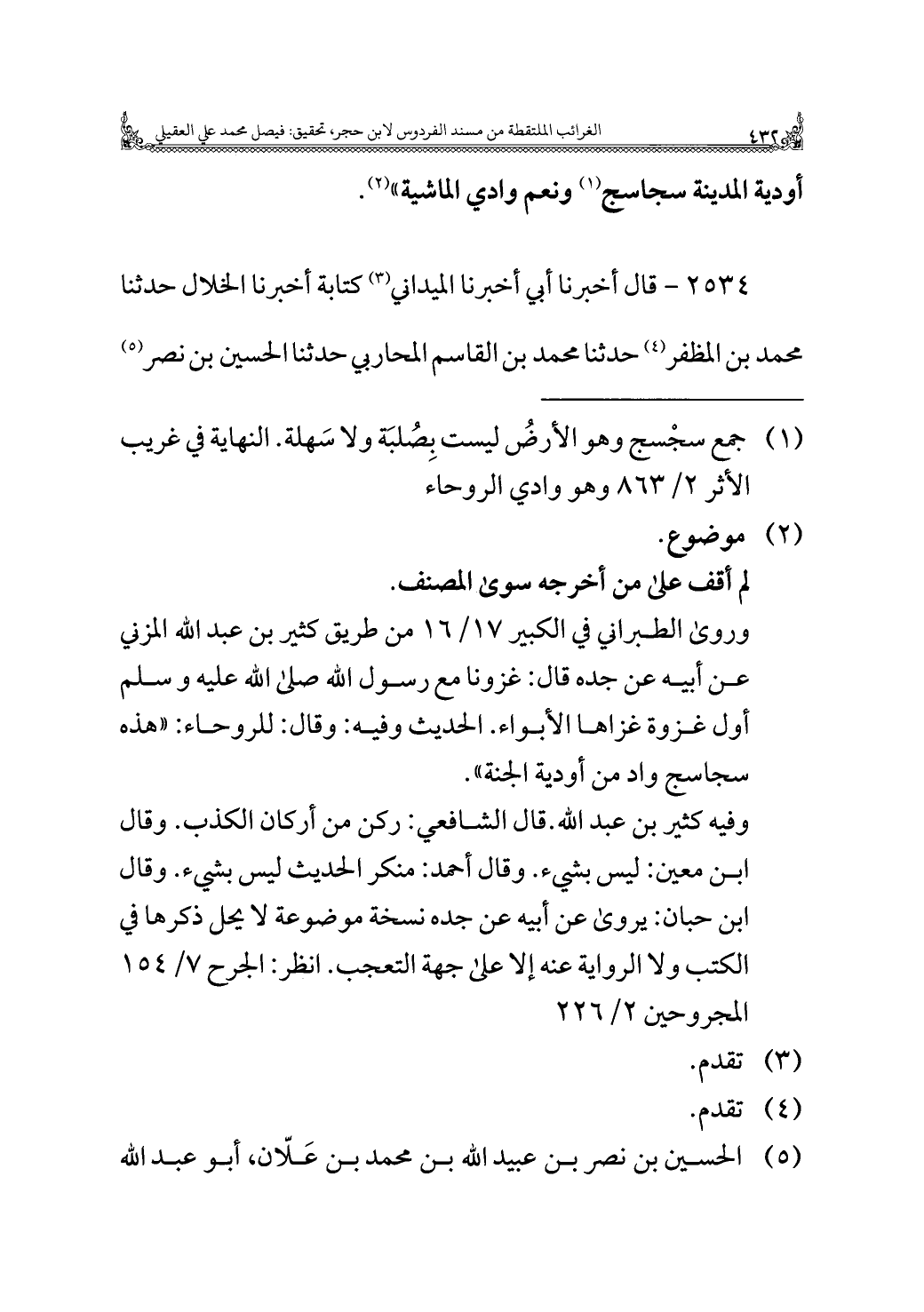 ٢٥٣٤ - قال أخبرنا أبي أخبرنا الميداني (¬٣) كتابة أخبرنا الخلال حدثنا محمد بن المظفر (¬٤) حدثنا محمد بن القاسم المحاربي حدثنا الحسين بن نصر (¬٥)