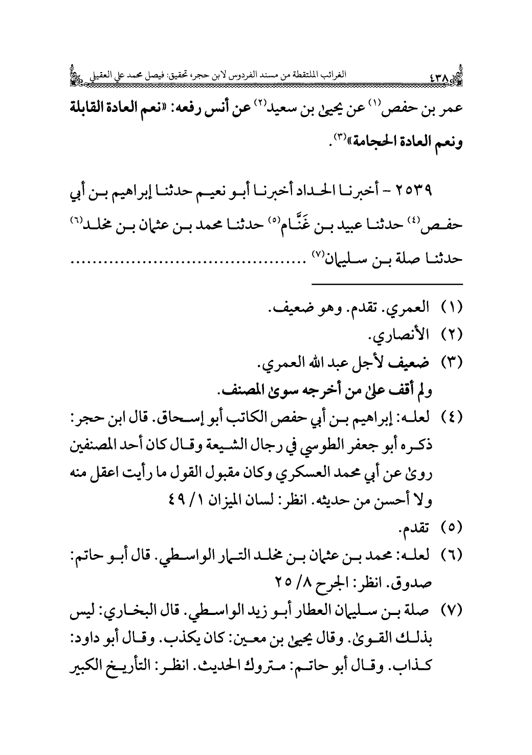 كتاب زهر الفردوس = الغرائب الملتقطة من مسند الفردوس (اسم الجزء: 6)