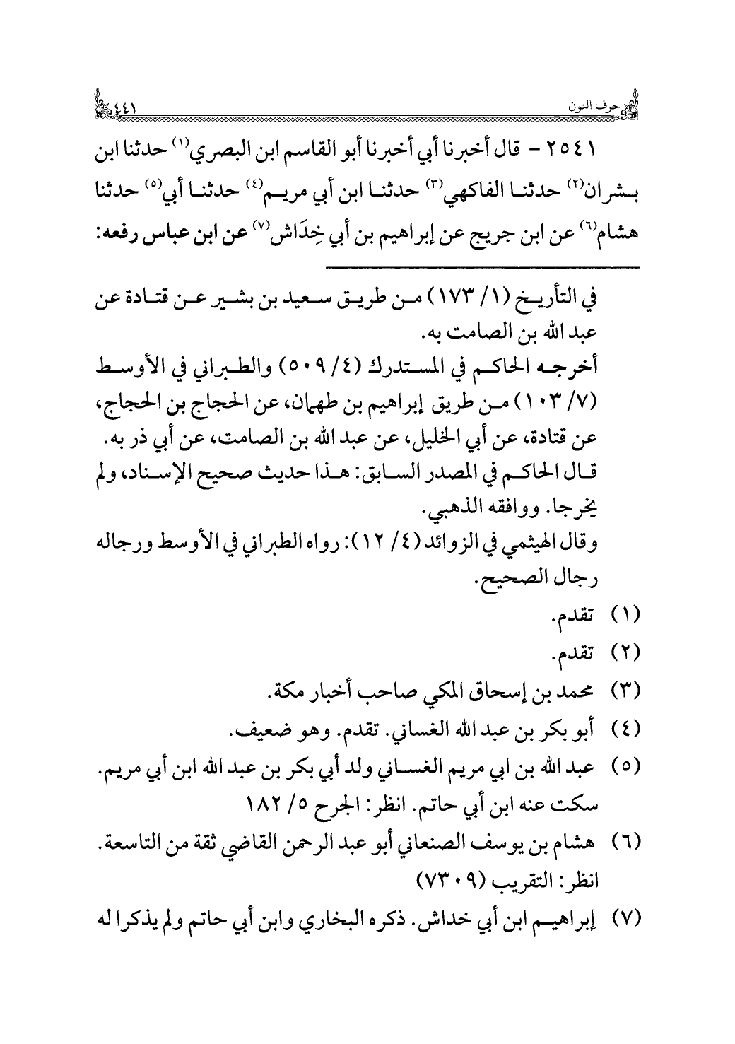٢٥٤١ - قال أخبرنا أبي أخبرنا أبو القاسم ابن البصري (¬١) حدثنا ابن بشران (¬٢) حدثنا الفاكهي (¬٣) حدثنا ابن أبي مريم (¬٤) حدثنا أبي (¬٥) حدثنا هشام (¬٦) عن ابن جريج عن إبراهيم بن أبي خِدَاش (¬٧) عن ابن عباس رفعه: