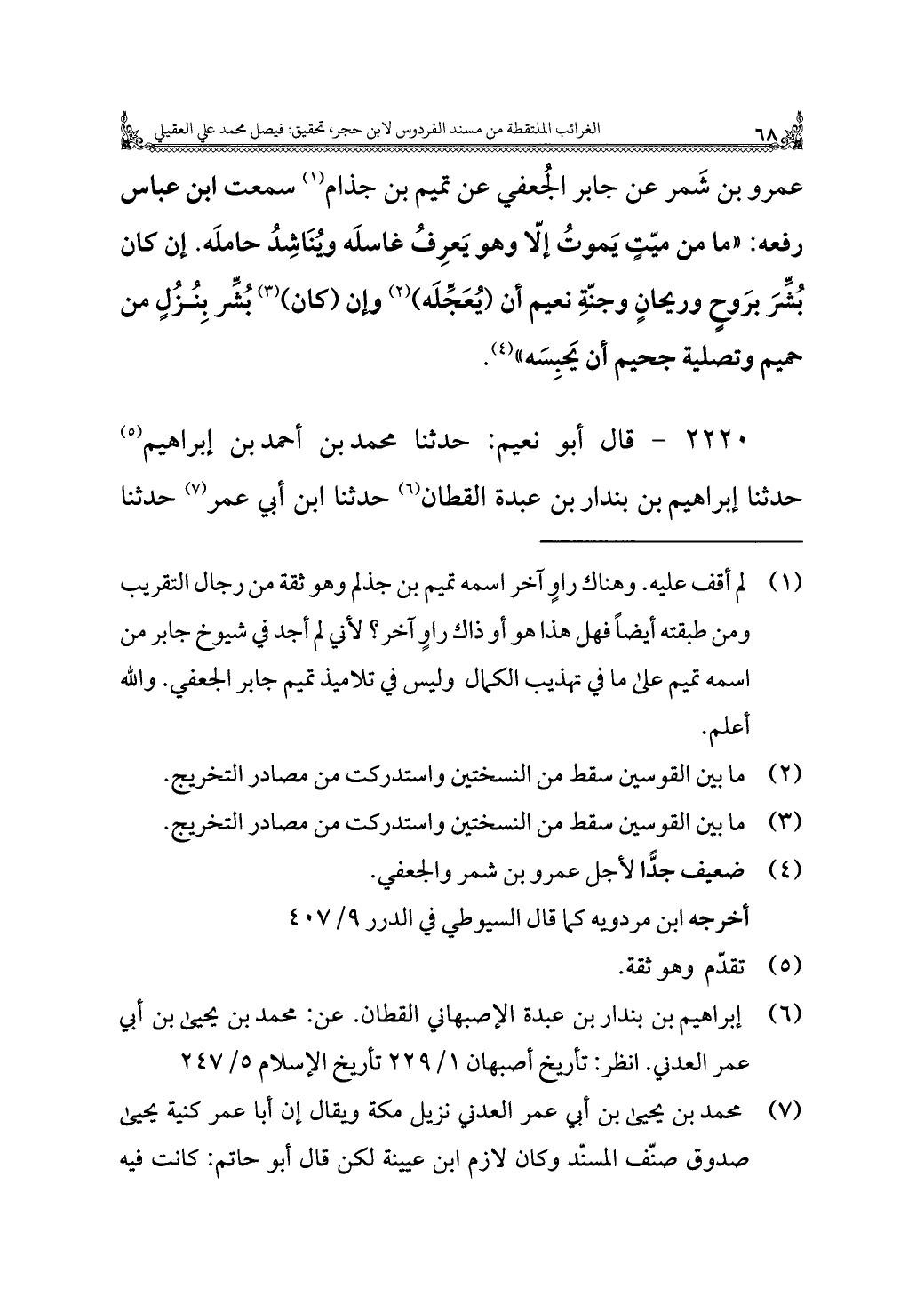 ٢٢٢٠ - قال أبو نعيم: حدثنا محمد بن أحمد بن إبراهيم (¬٥) حدثنا إبراهيم بن بندار بن عَبْدَةُ القطان (¬٦) حدثنا ابن أبي عمر (¬٧) حدثنا