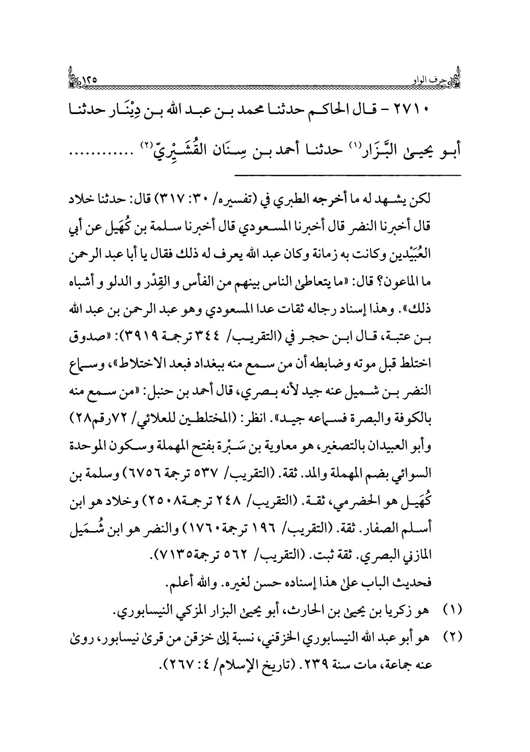 ٢٧١٠ - قال الحاكم حدثنا محمد بن عبد الله بن دِيْنَار حدثنا أبو يحيى البَّزَار (¬١) حدثنا أحمد بن سِنَان القُشَيْرِيّ (¬٢) ........
