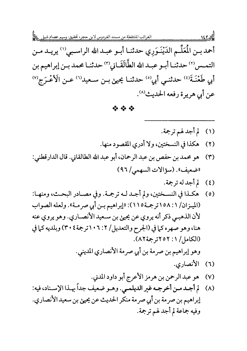 (¬٣) هو محمد بن حفص بن عبد الرحمان، أبو عبد الله الطالقاني. قال الدارقطني: "ضعيف". (سؤالات السهمي/ ٩٦).