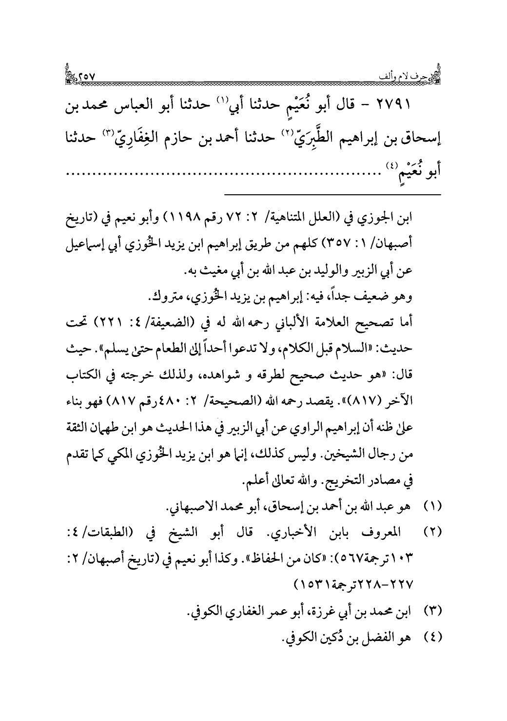 ٢٧٩١ - قال أبو نُعَيْمٍ حدثنا أبي (¬١) حدثنا أبو العباس محمد بن إسحاق بن إبراهيم الطَّبِرَيّ (¬٢) حدثنا أحمد بن حازم الغِفَارِيّ (¬٣) حدثنا أبو نُعَيْمٍ (¬٤) ............................................................