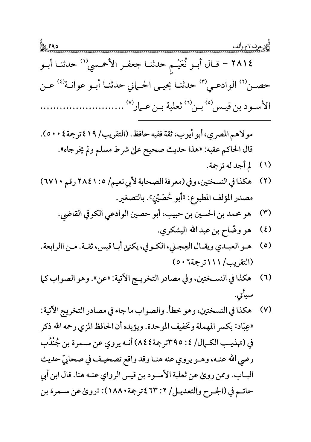 ٢٨١٤ - قال أبو نُعَيْمٍ حدثنا جعفر الأحمسي (¬١) حدثنا أبو حصن (¬٢) الوادعى (¬٣) حدثنا يحيى الحماني حدثنا أبو عوانة (¬٤) عن الأسود بن قيس (¬٥) بن (¬٦) ثعلبة بن عمار (¬٧) ..........................