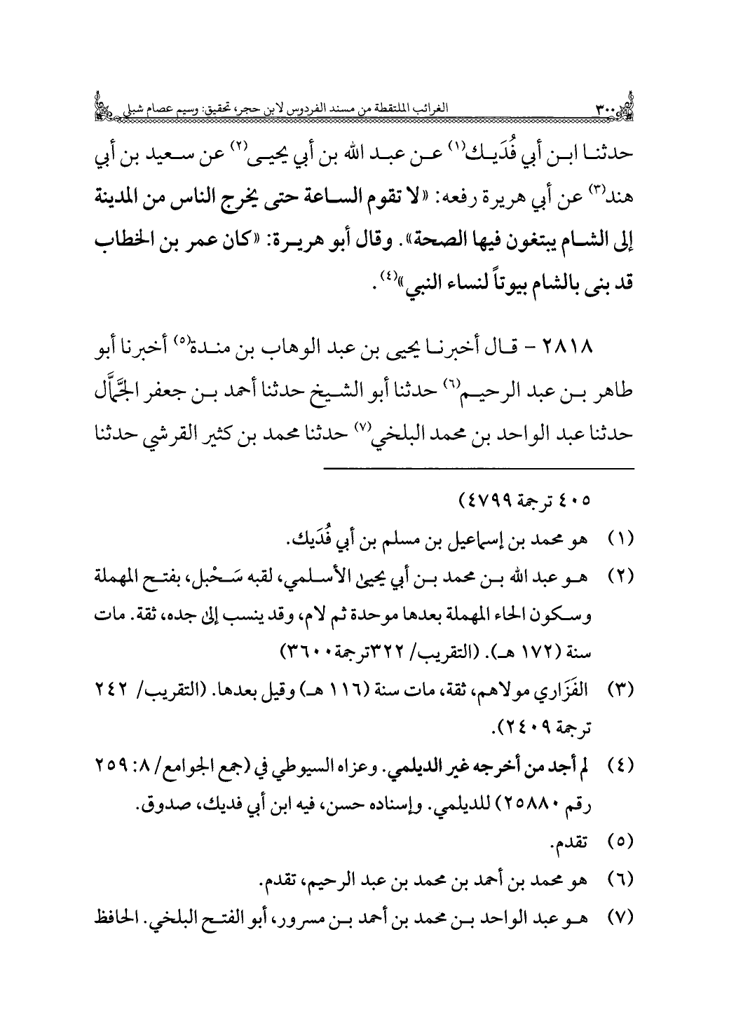 كتاب زهر الفردوس = الغرائب الملتقطة من مسند الفردوس (اسم الجزء: 7)