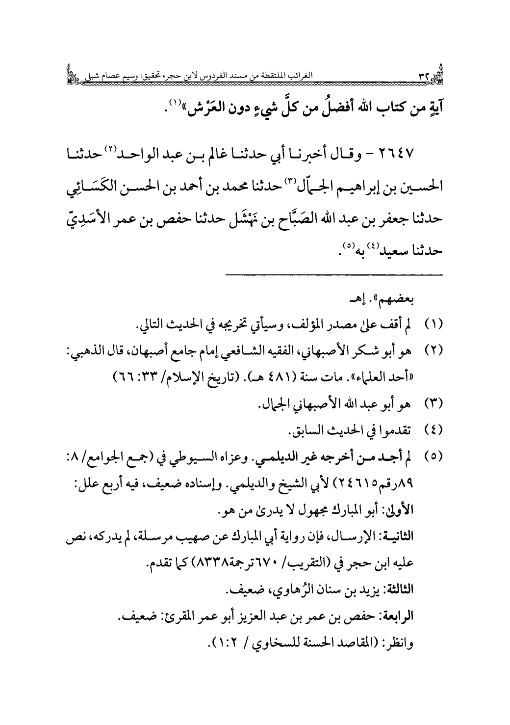 ٢٦٤٧ - وقال أخبرنا أبي حدثنا غالم بن عبد الواحد (¬٢) حدثنا الحسين بن إبراهيم الجماّل (¬٣) حدثنا محمد بن أحمد بن الحسن الكَسَائِي حدثنا جعفر بن عبد الله الصَبَّاح بن نَهْشَل حدثنا حفص بن عمر الأسَدِيّ حدثنا سعيد (¬٤) به (¬٥).