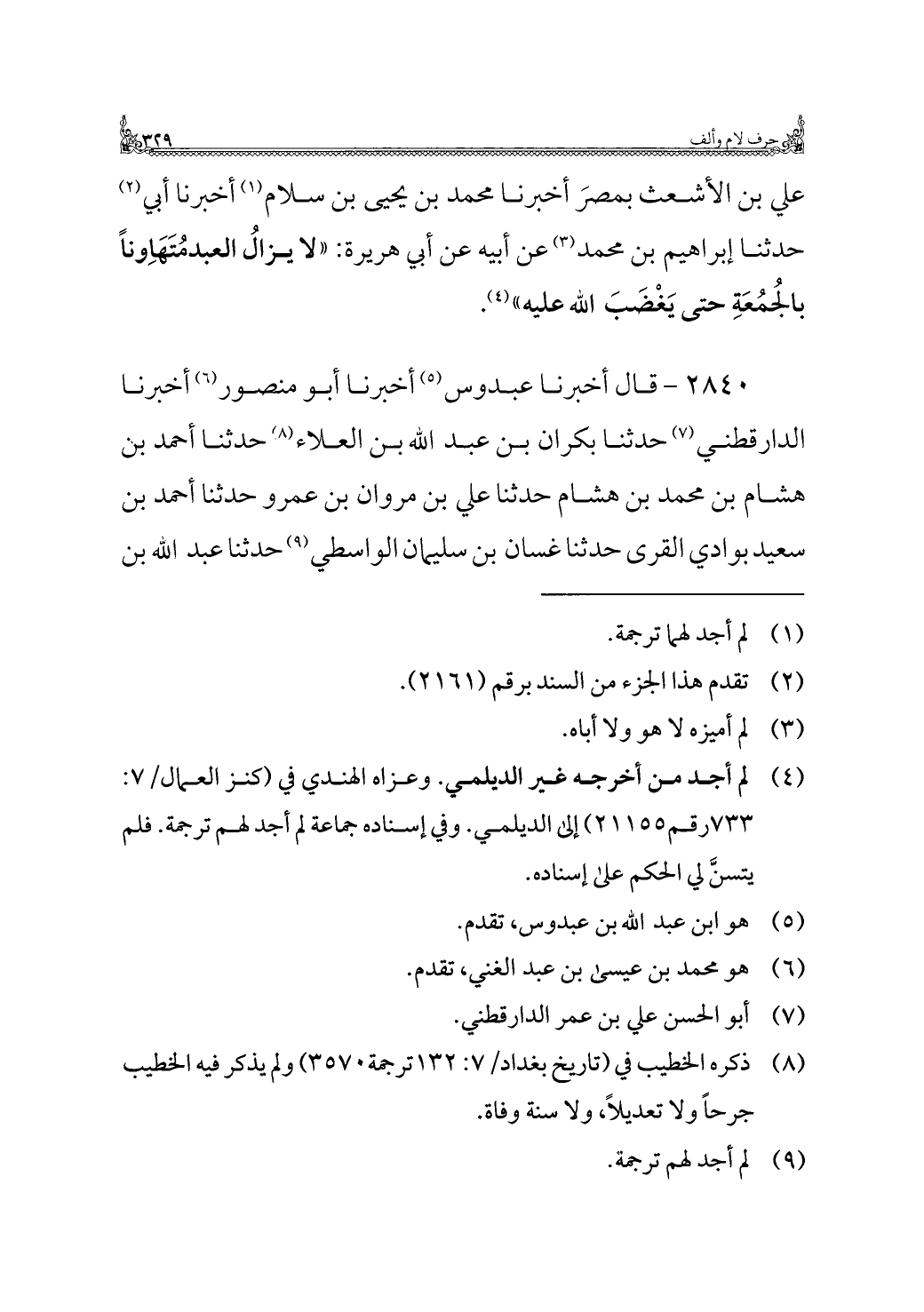 (¬٨) ذكره الخطيب في (تاريخ بغداد/ ٧: ١٣٢ ترجمة ٣٥٧٠) ولم يذكر فيه الخطيب جرحًا ولا تعديلًا، ولا سنة وفاة.