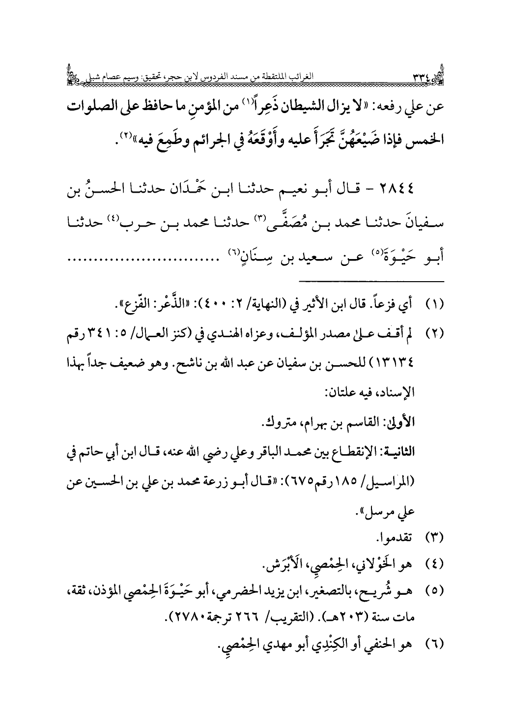 ٢٨٤٤ - قال أبو نعيم حدثنا ابن حَمْدَان حدثنا الحسنُ بن سفيانَ حدثنا محمد بن مُصَفَّى (¬٣) حدثنا محمد بن حرب (¬٤) حدثنا أبو حَيْوَةَ (¬٥) عن سعيد بن سِنَانٍ (¬٦) .............................