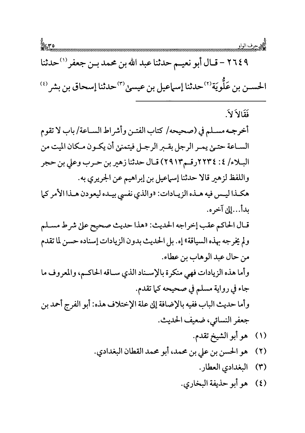 ٢٦٤٩ - قال أبو نعيم حدثنا عبد الله بن محمد بن جعفر (¬١) حدثنا الحسن بن عَلُّويَة (¬٢) حدثنا إسماعيل بن عيسى (¬٣) حدثنا إسحاق بن بشر (¬٤)