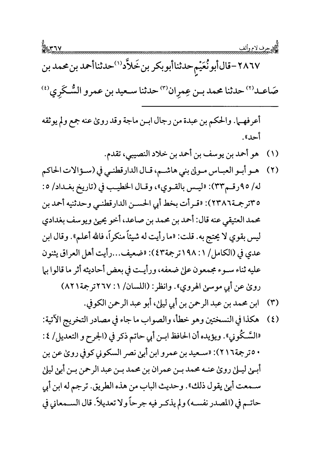 ٢٨٦٧ - قال أبو نُعَيْمٍ حدثنا أبو بكر بن خَلَّاد (¬١) حدثنا أحمد بن محمد بن صَاعد (¬٢) حدثنا محمد بن عِمرِان (¬٣) حدثنا سعيد بن عمرو السُّكَرِي (¬٤)
