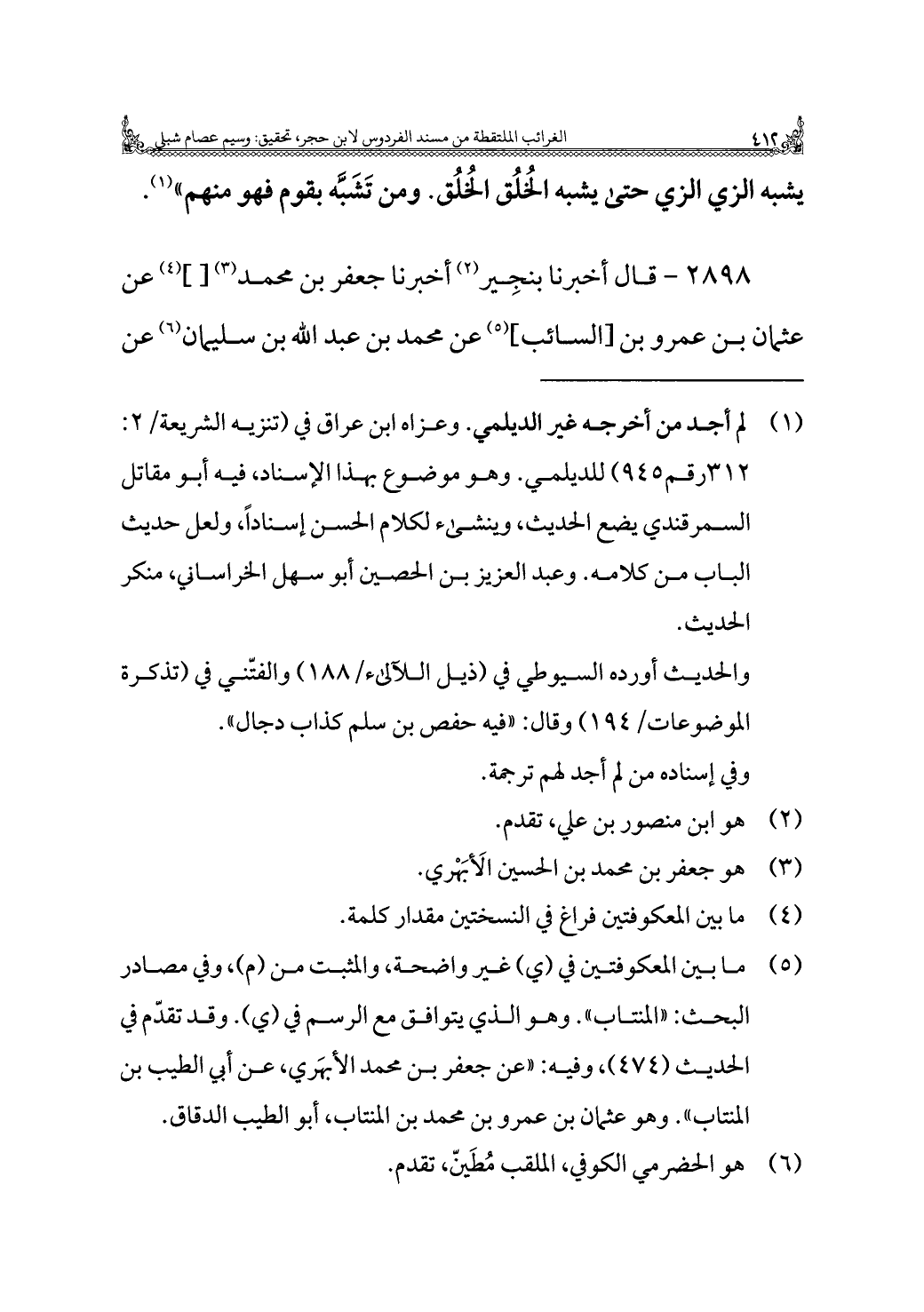 كتاب زهر الفردوس = الغرائب الملتقطة من مسند الفردوس (اسم الجزء: 7)