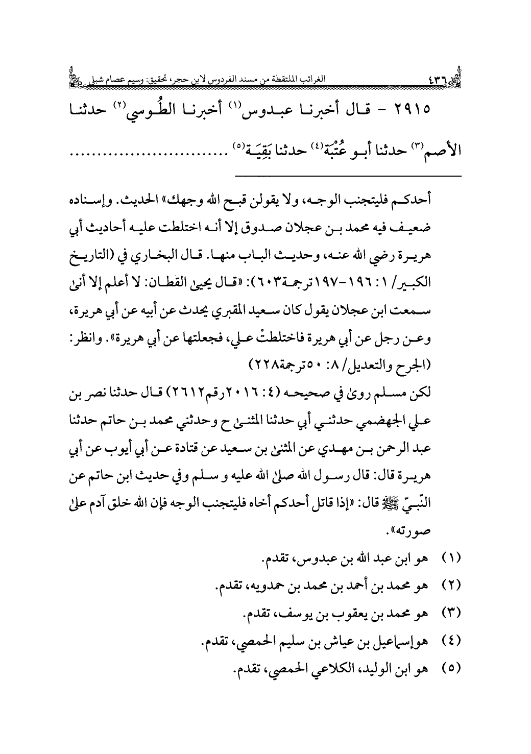 ٢٩١٥ - قال أخبرنا عبدوس (¬١) أخبرنا الطُّوسي (¬٢) حدثنا الأصم (¬٣) حدثنا أبو عُتْبَة (¬٤) حدثنا بَقِيَة (¬٥)