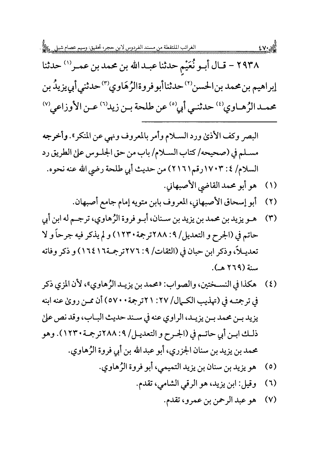 ٢٩٣٨ - قال أبو نُعَيْمٍ حدثنا عبد الله بن محمد بن عمر (¬١) حدثنا إبراهيم بن محمد بن الحسن (¬٢) حدثنا أبو فروة الرُّهَاوي (¬٣) حدثني أبي يزيدُ بن محمد الرُهاوي (¬٤) حدثني أبي (¬٥) عن طلحة بن زيد (¬٦) عن الأوزاعي (¬٧)