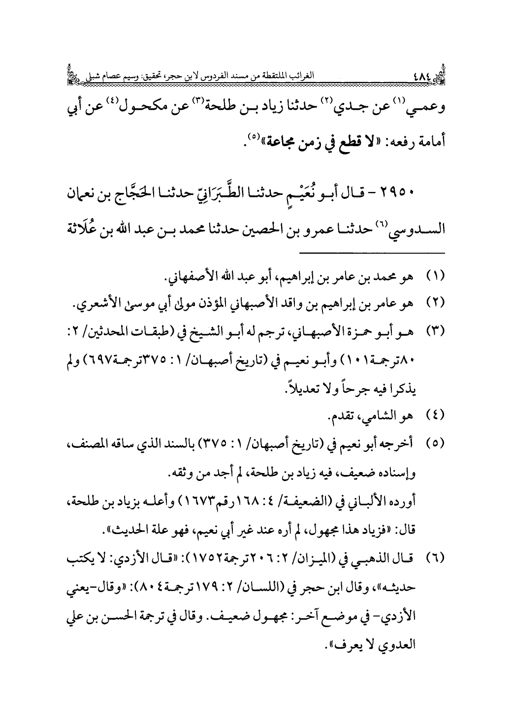 ٢٩٥٠ - قال أبو نُعَيْمٍ حدثنا الطَّبَرَانِيّ حدثنا الحجَّاج بن نعمان السدوسي (¬٦) حدثنا عمرو بن الحصين حدثنا محمد بن عبد الله بن عُلَاثة