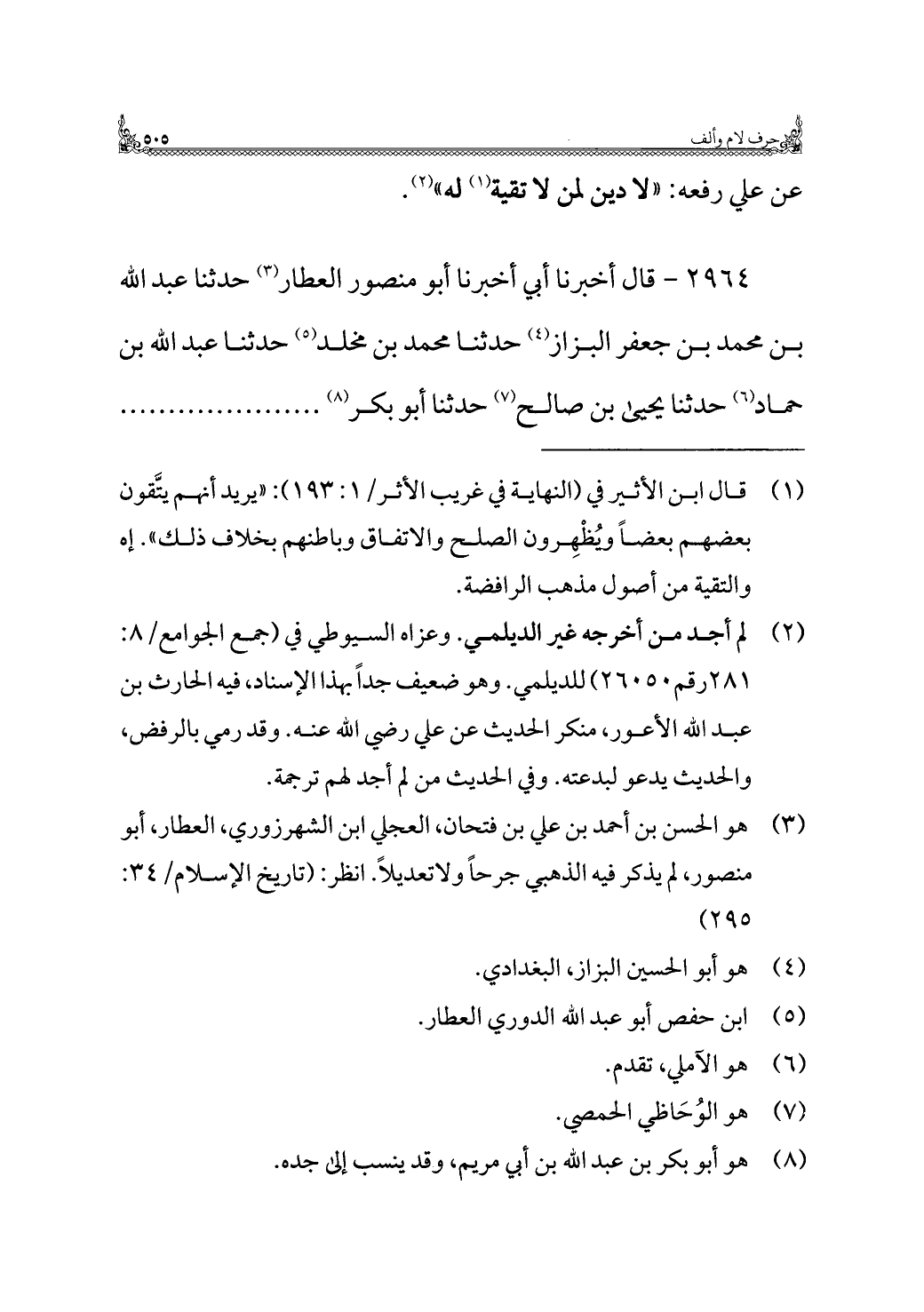 ٢٩٦٤ - قال أخبرنا أبي أخبرنا أبو منصور العطار (¬٣) حدثنا عبد الله بن محمد بن جعفر البزاز (¬٤) حدثنا محمد بن مخلد (¬٥) حدثنا عبد الله بن حماد (¬٦) حدثنا يحيى بن صالح (¬٧) حدثنا أبو بكر (¬٨)