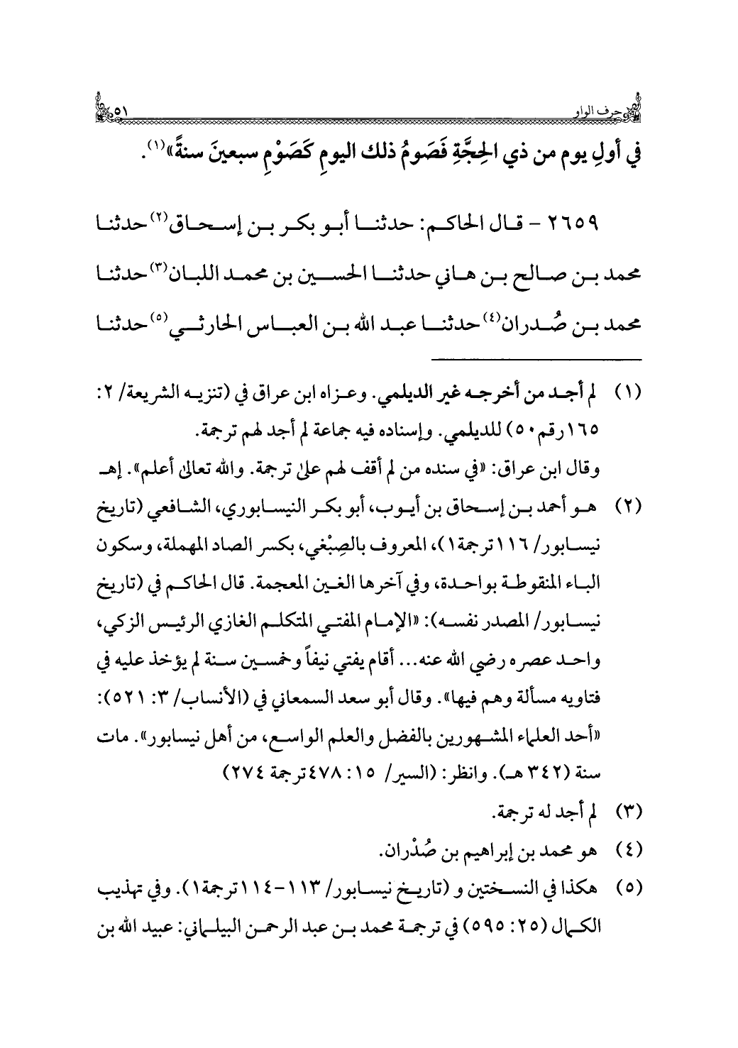 ٢٦٥٩ - قال الحاكم: حدثنا أبو بكر بن إسحاق (¬٢) حدثنا محمد بن صالح بن هاني حدثنا الحسين بن محمد اللبان (¬٣) حدثنا محمد بن صُدران (¬٤) حدثنا عبد الله بن العباس الحارثي (¬٥) حدثنا