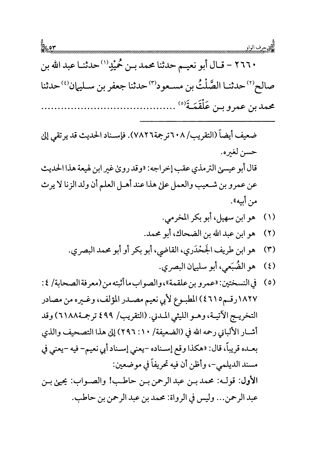 ٢٦٦٠ - قال أبو نعيم حدثنا محمد بن حُميْدٍ (¬١) حدثنا عبد الله بن صالح (¬٢) حدثنا الصَّلْتُ بن مسعود (¬٣) حدثنا جعفر بن سليمان (¬٤) حدثنا محمد بن عمرو بن عَلْقَمَةَ (¬٥) ............................................