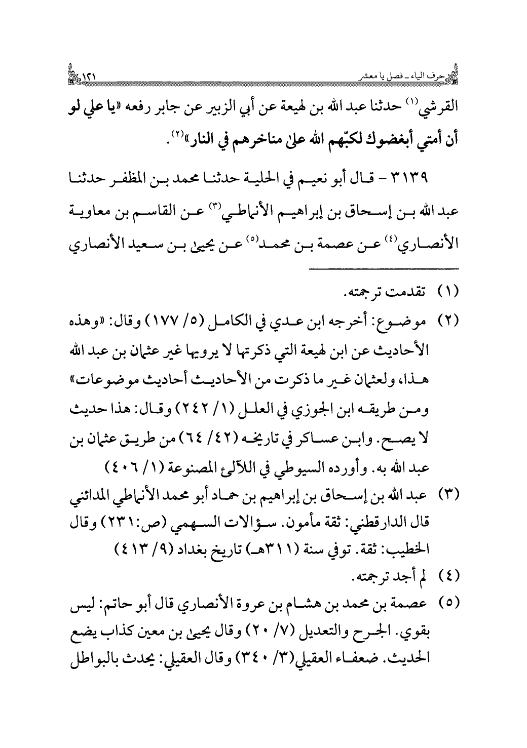 (¬٥) عصمة بن محمد بن هشام بن عروة الأنصاري قال أبو حاتم: ليس بقوي. الجرح والتعديل (٧/ ٢٠) وقال يحيى بن معين كذاب يضع الحديث. ضعفاء العقيلي (٣/ ٣٤٠) وقال العقيلي: يحدث بالبواطل =
