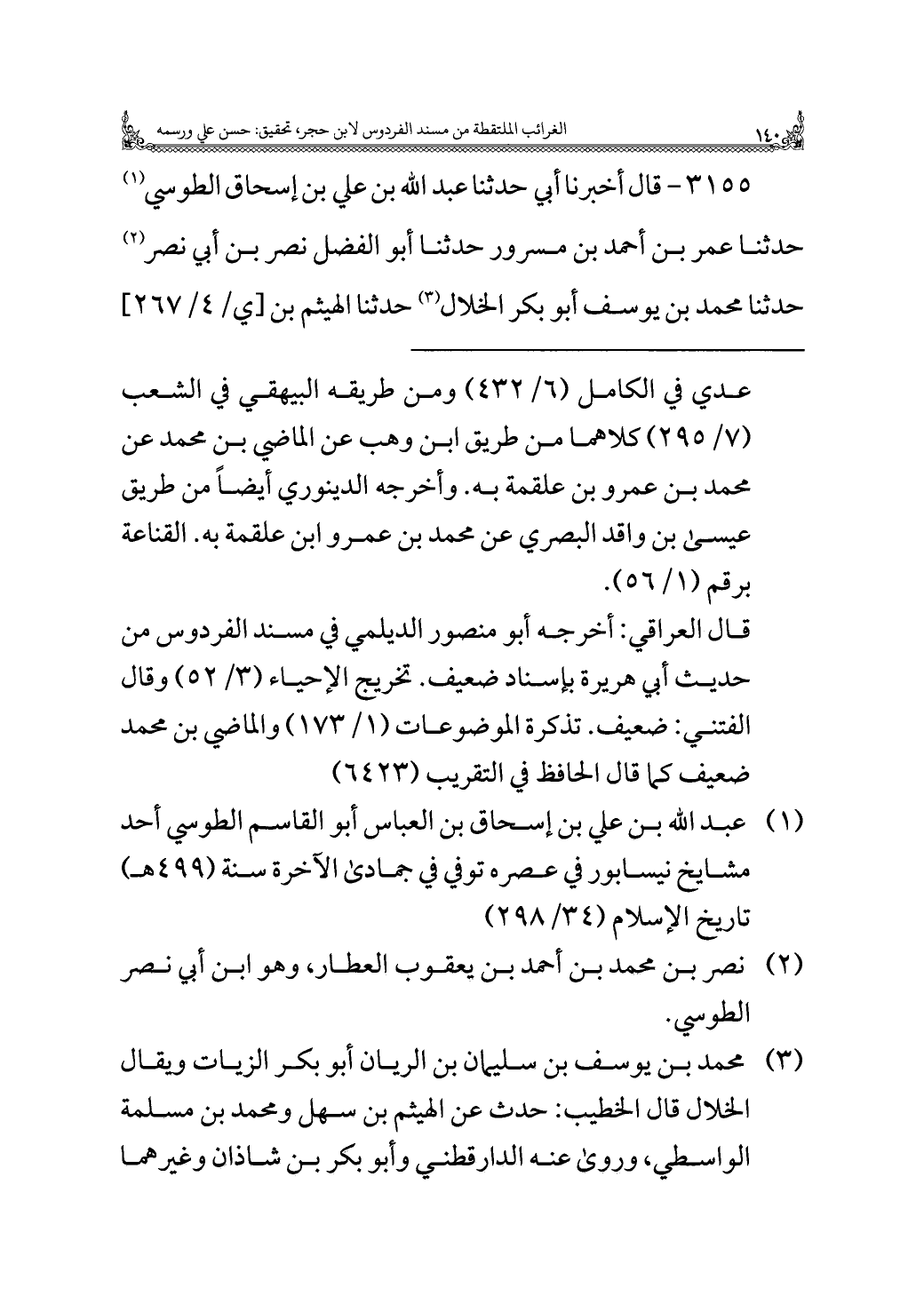 ٣١٥٥ - قال أخبرنا أبي حدثنا عبد الله بن علي بن إسحاق الطوسي (¬١) حدثنا عمر بن أحمد بن مسرور حدثنا أبو الفضل نصر بن أبي نصر (¬٢) حدثنا محمد بن يوسف أبو بكر الخلال (¬٣) حدثنا الهيثم بن