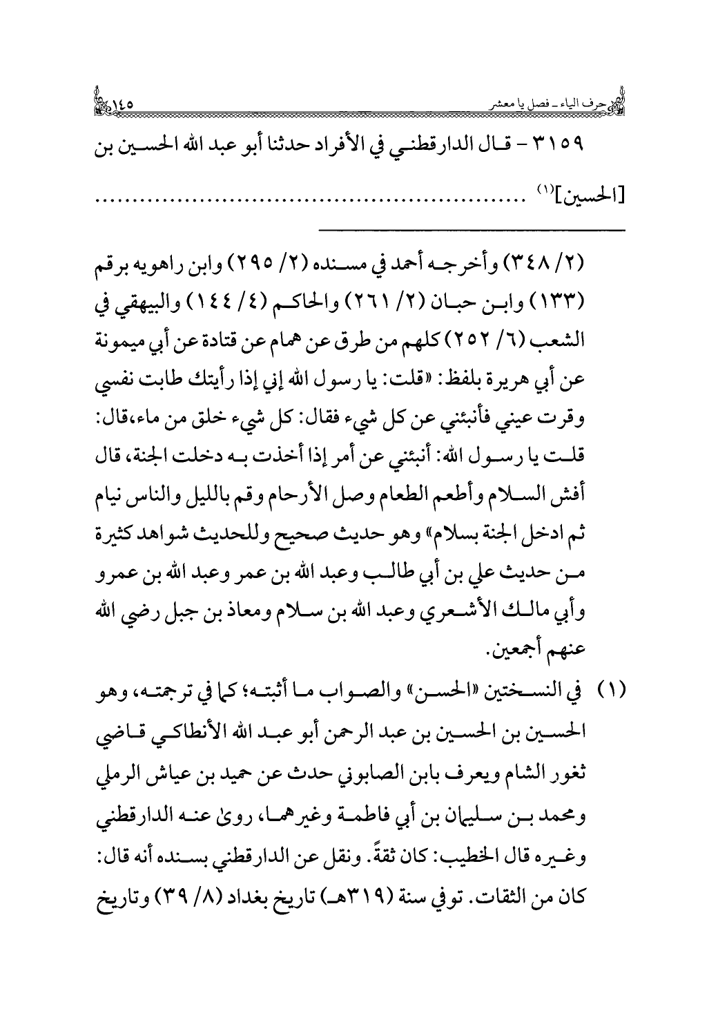٣١٥٩ - قال الدارقطني في الأفراد حدثنا أبو عبد الله الحسين بن [الحسين] (¬١). . . . . . .