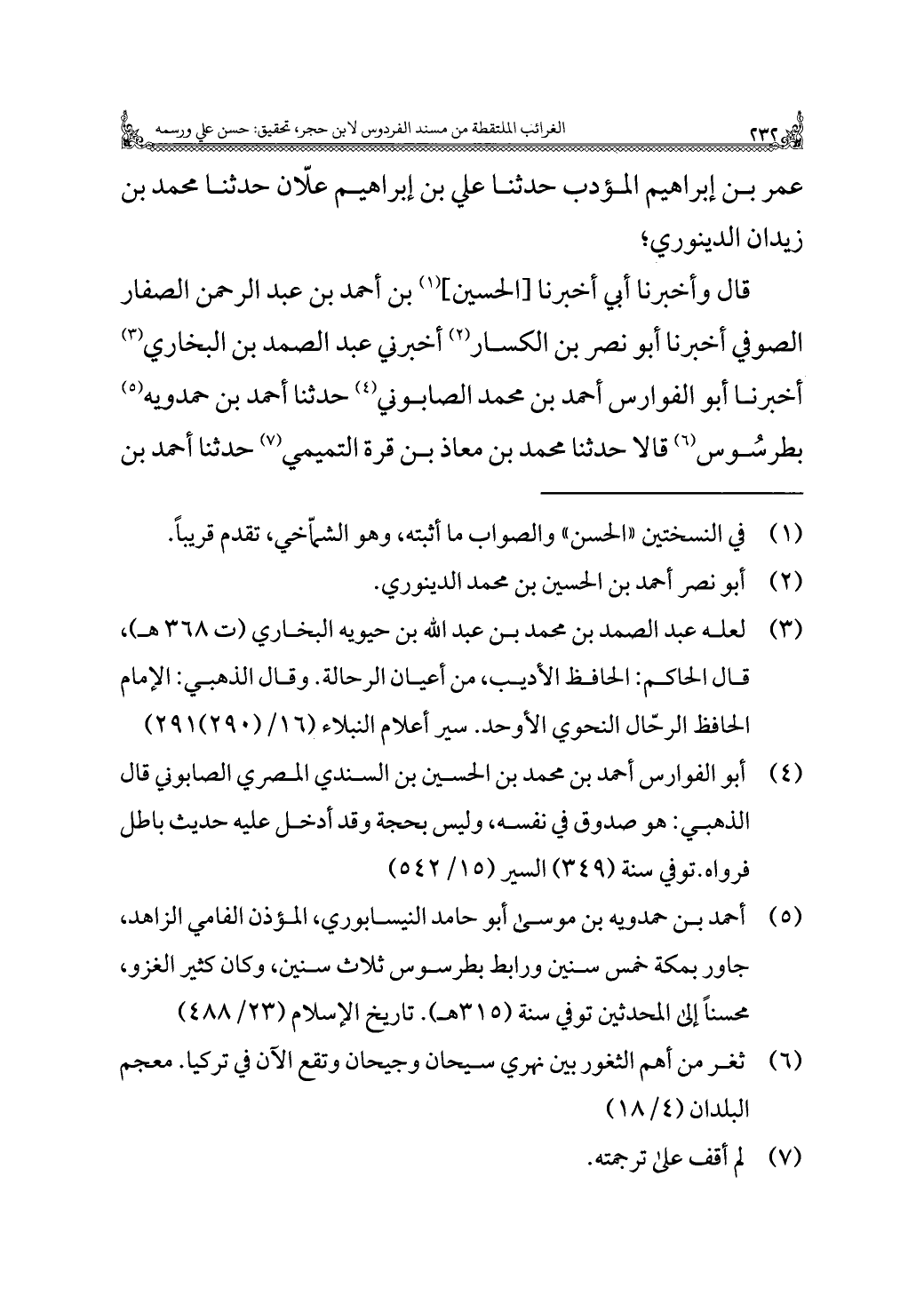 (¬٤) أبو الفوارس أحمد بن محمد بن الحسين بن السندي المصري الصابوني قال الذهبي: هو صدوق في نفسه، وليس بحجة وقد أدخل عليه حديث باطل فرواه. توفي سنة (٣٤٩) السير (١٥/ ٥٤٢).