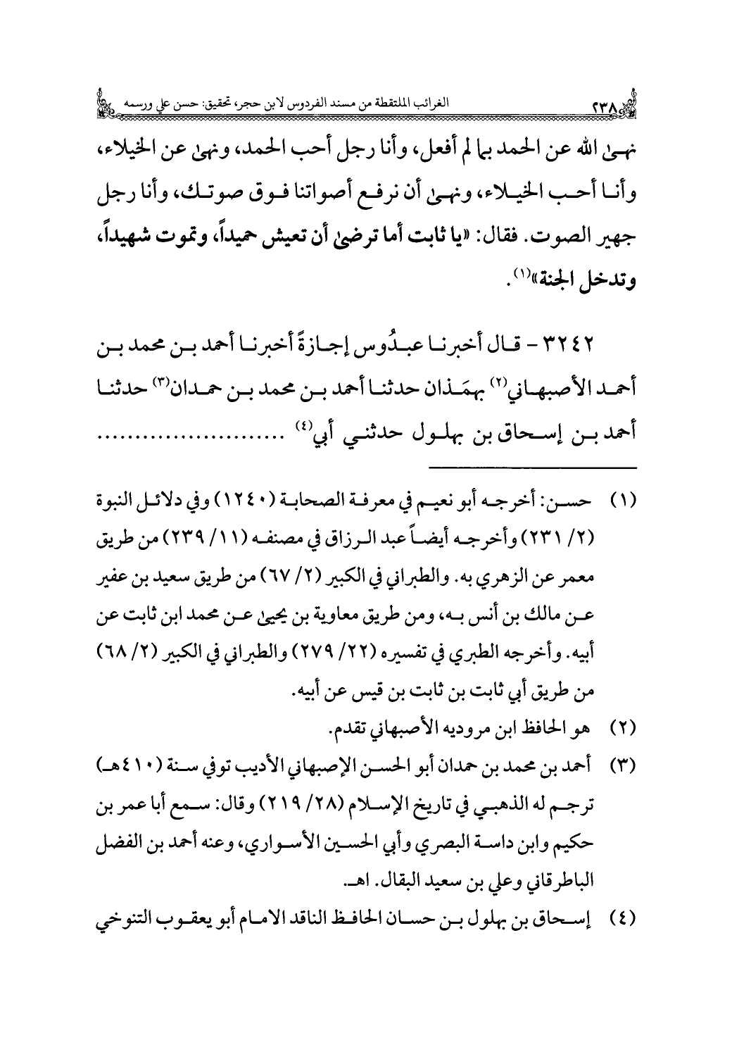 ٣٢٤٢ - قال أخبرنا عبدُوس إجازةً أخبرنا أحمد بن محمد بن أحمد الأصبهاني (¬٢) بهمَذان حدثنا أحمد بن محمد بن حمدان (¬٣) حدثنا أحمد بن إسحاق بن بهلول حدثني أبي (¬٤). . . . . . .