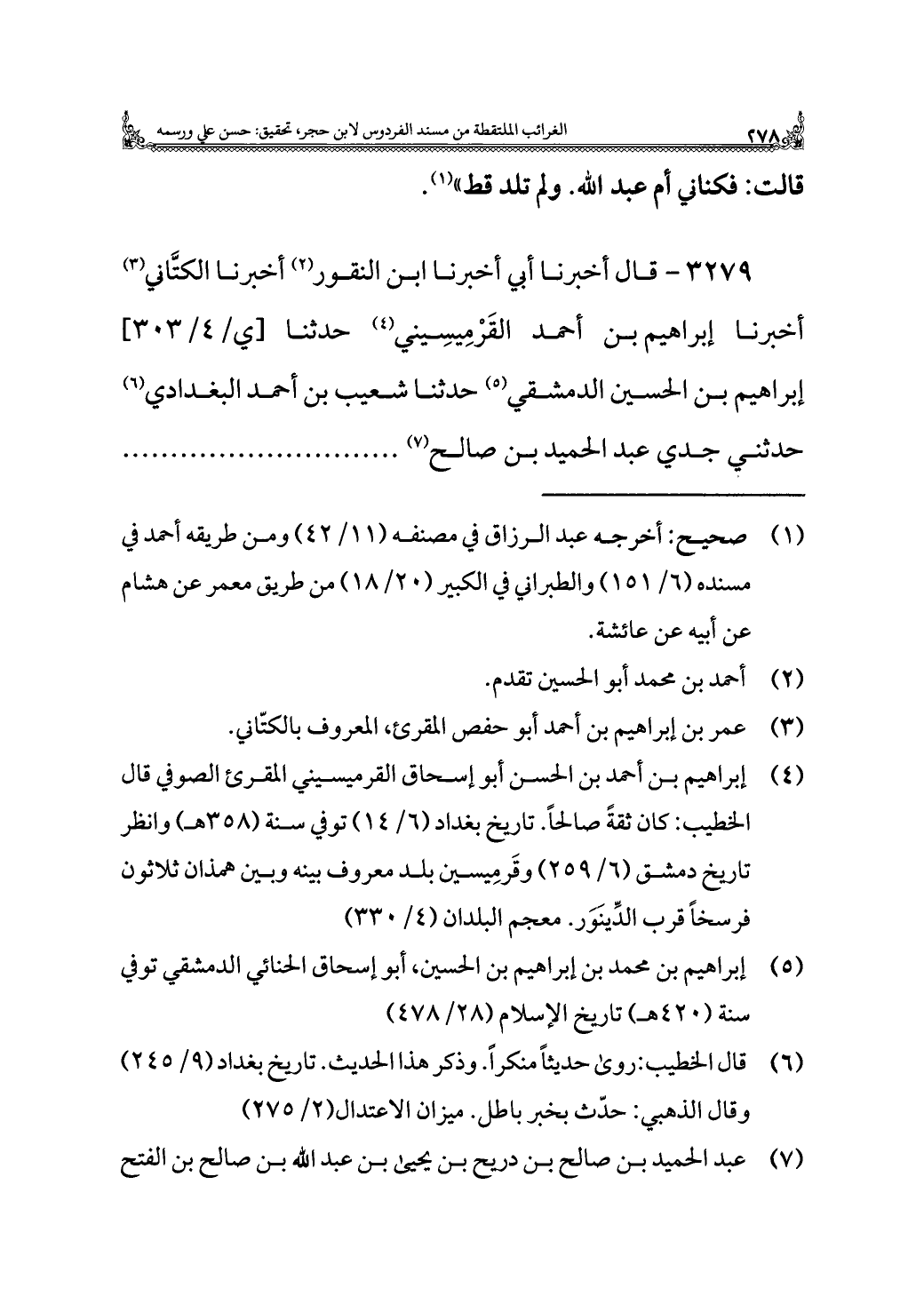 ٣٢٧٩ - قال أخبرنا أبي أخبرنا ابن النقور (¬٢) أخبرنا الكتَّاني (¬٣) أخبرنا إبراهيم بن أحمد القَرْمِيسِيني (¬٤) حدثنا إبراهيم بن الحسين الدمشقي (¬٥) حدثنا شعيب بن أحمد البغدادي (¬٦) حدثني جدي عبد الحميد بن صالح (¬٧). . . . .