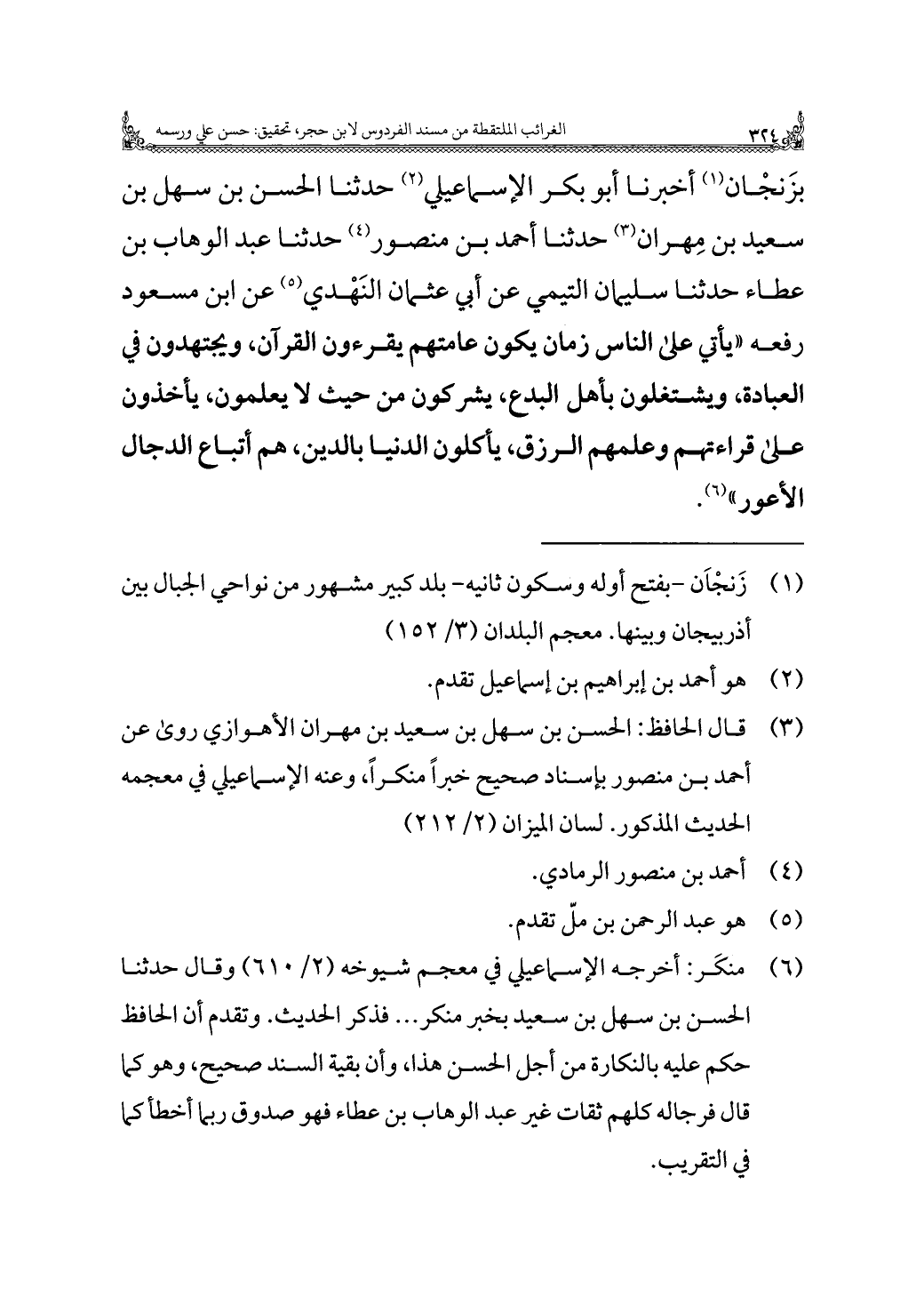 (¬٣) قال الحافظ: الحسن بن سهل بن سعيد بن مهران الأهوازي روى عن أحمد بن منصور بإسناد صحيح خبرًا منكرًا، وعنه الإسماعيلي في معجمه الحديث المذكور. لسان الميزان (٢/ ٢١٢).