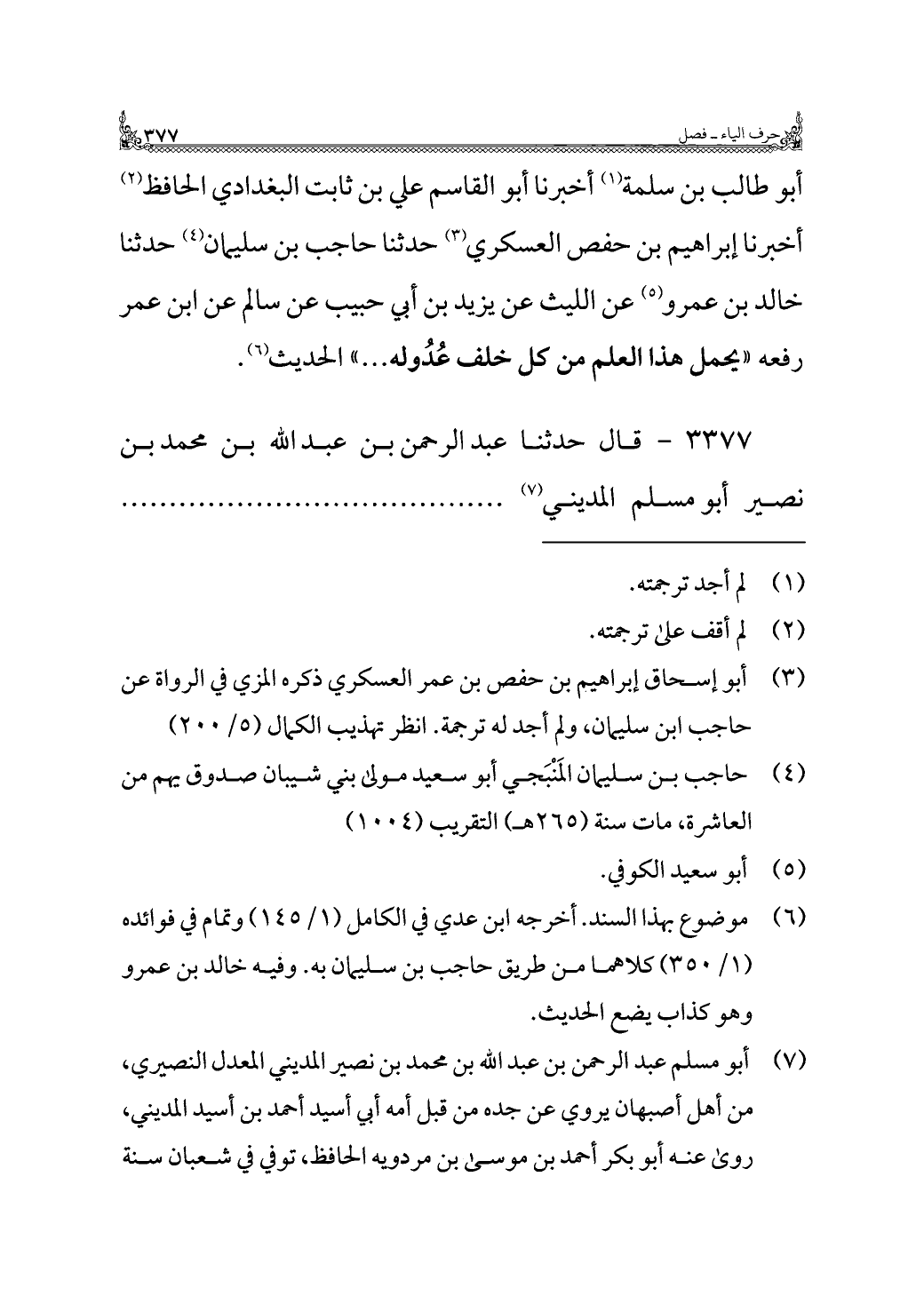 ٣٣٧٧ - قال حدثنا عبدالرحمن بن عبد اللَّه بن محمد بن نصير أبو مسلم المديني (¬٧). . . . . .