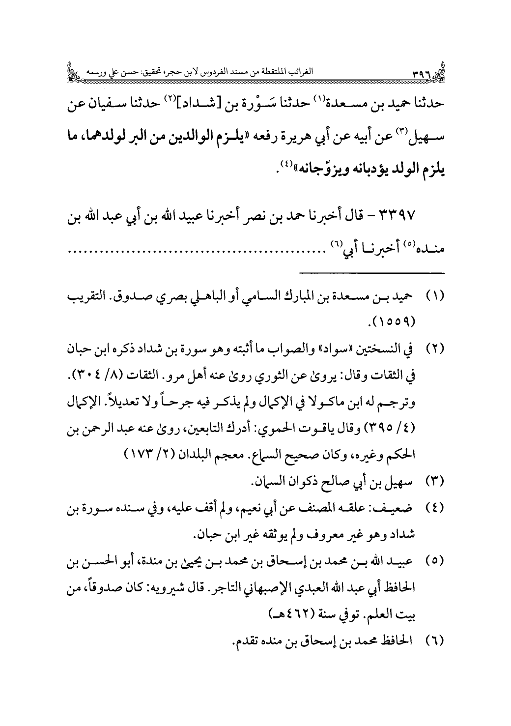 (¬١) حميد بن مسعدة بن المبارك السامي أو الباهلي بصري صدوق. التقريب (١٥٥٩).