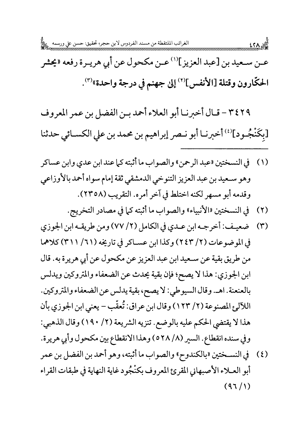 (¬٤) في النسختين "بالكندوح" والصواب ما أثبته، وهو أحمد بن الفضل بن عمر أبو العلاء الأصبهاني المقرئ المعروف بكنْجُود غاية النهاية في طبقات القراء (١/ ٩٦).