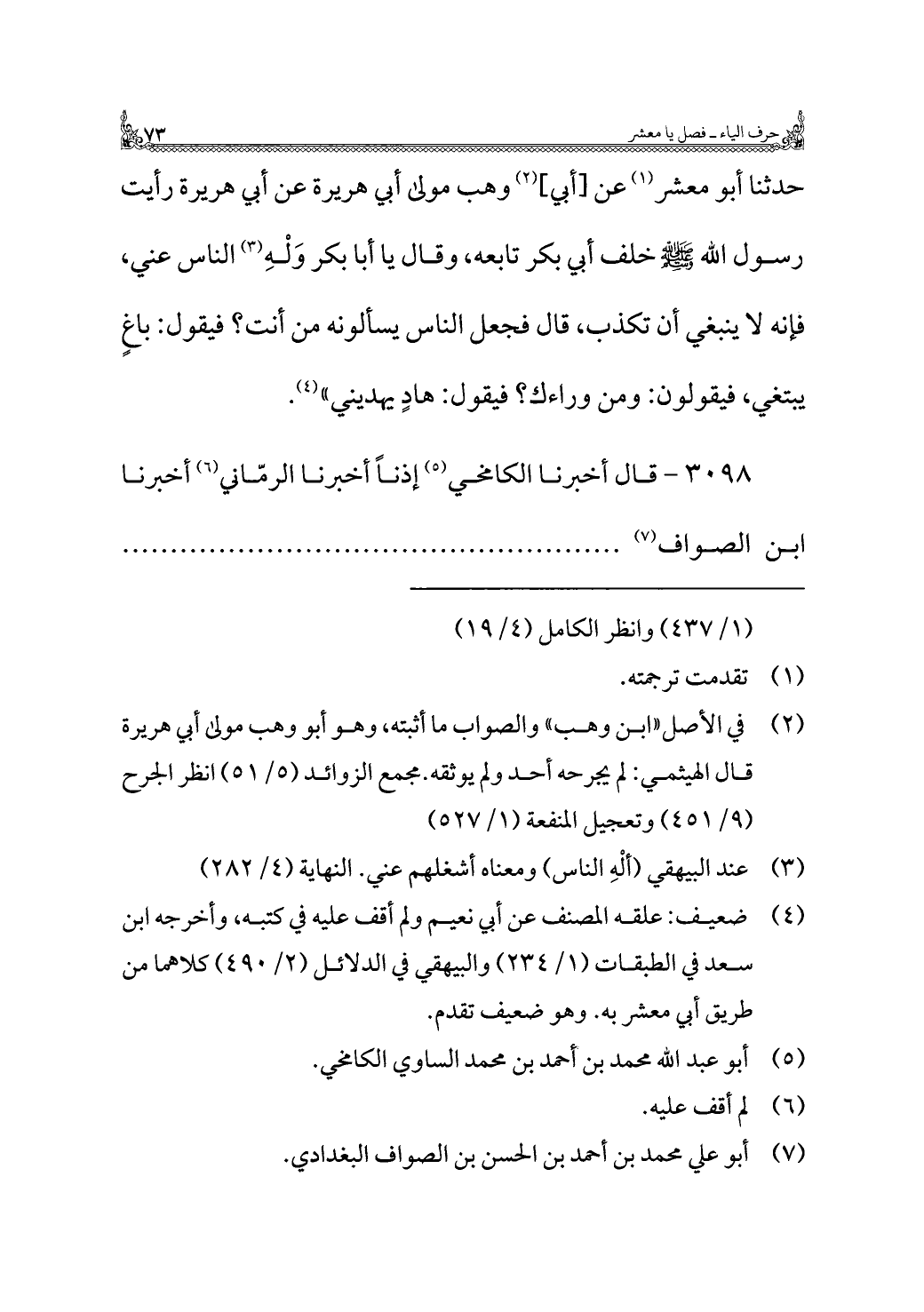 ٣٠٩٨ - قال أخبرنا الكامخي (¬٥) إذنًا أخبرنا الرمّاني (¬٦) أخبرنا ابن الصواف (¬٧). . . . . . .