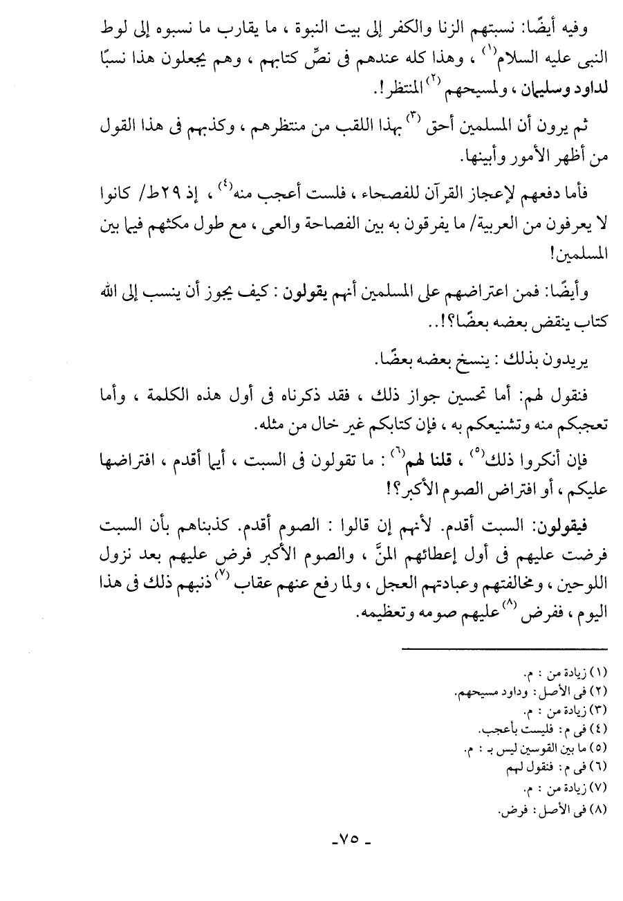 وفيه أيضًا: نسبتهم الزنا والكفر إلى بيت النبوة، ما يقارب ما نسبوه إلى لوط النبى عليه السلام، وهذا كله عندهم في نصِّ كتابهم، وهم يجعلون هذا نسبًا لداود وسليمان، ولمسيحهم المنتظر!.