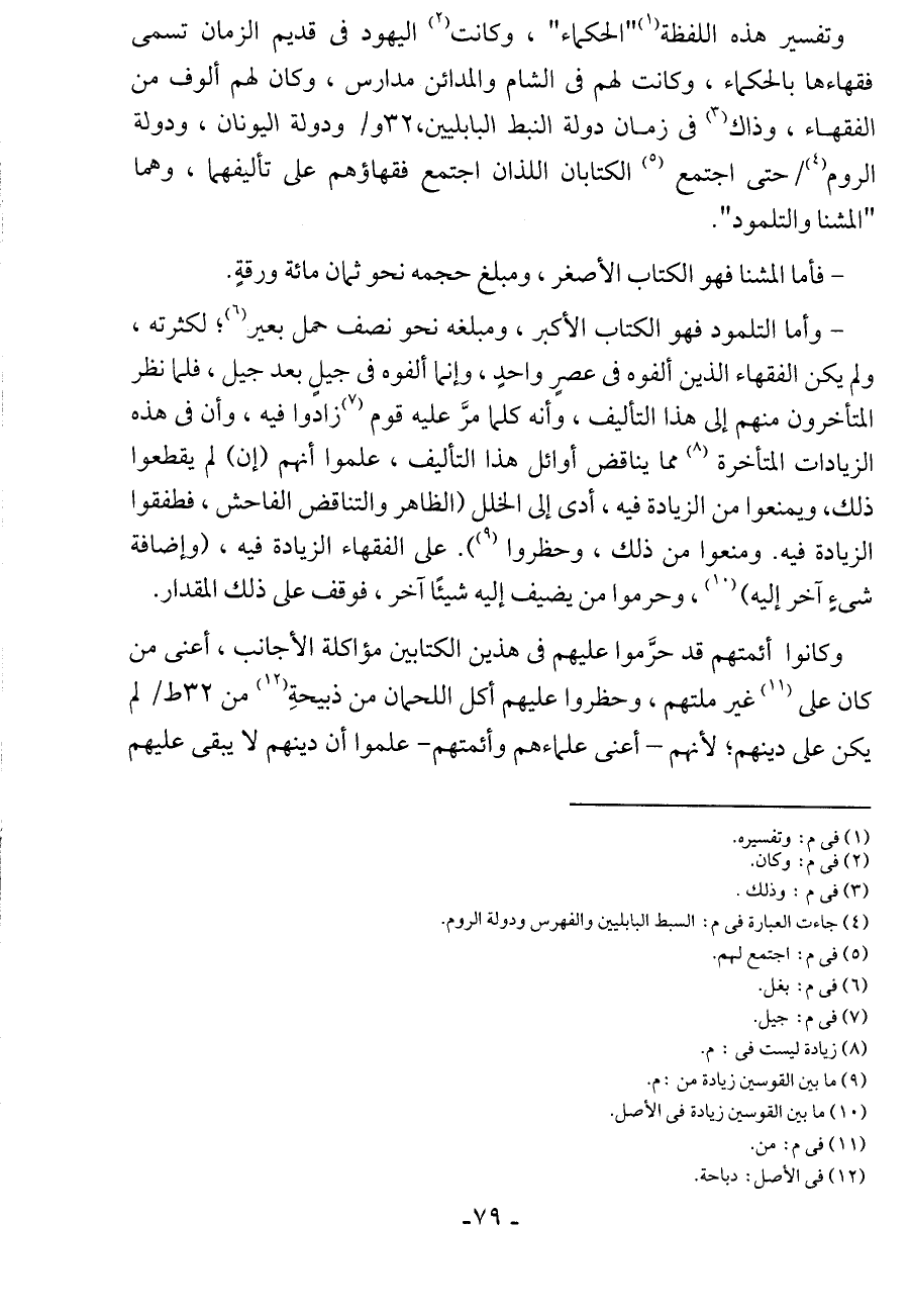 - وأما التلمود فهو الكتاب الأكبر، ومبلغه نحو نصف حمل بعير، لكثرته،