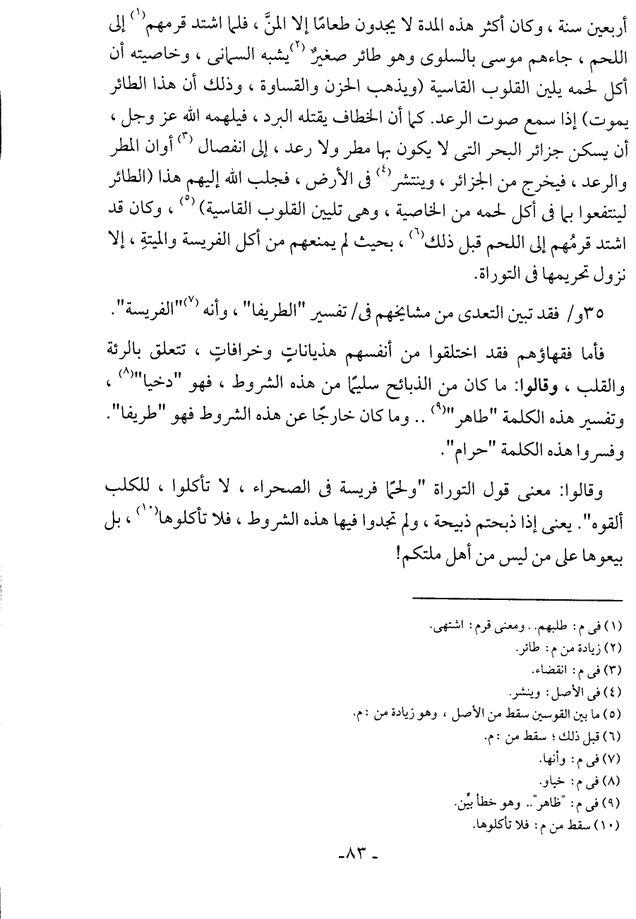 وقالوا: معنى قول التوراة "ولحمًا فريسة في الصحراء، لا تأكلوا، للكلب