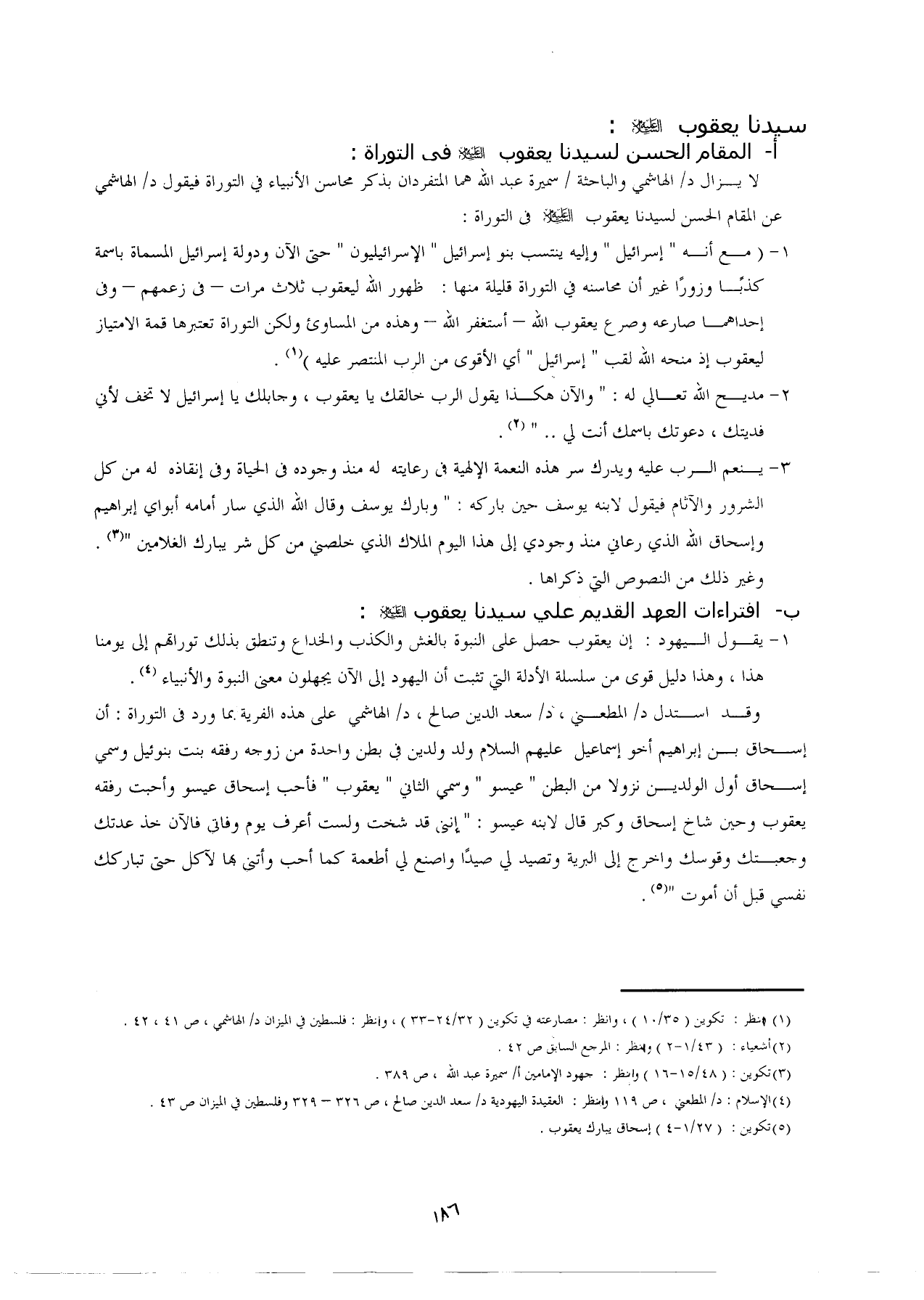 (¬1) انظر: تكوين (35/ 10)، وانظر: مصارعته في تكوين (32/ 24 - 33)، وانظر: فلسطين في الميزان د/ الهاشمي، ص 41، 42.