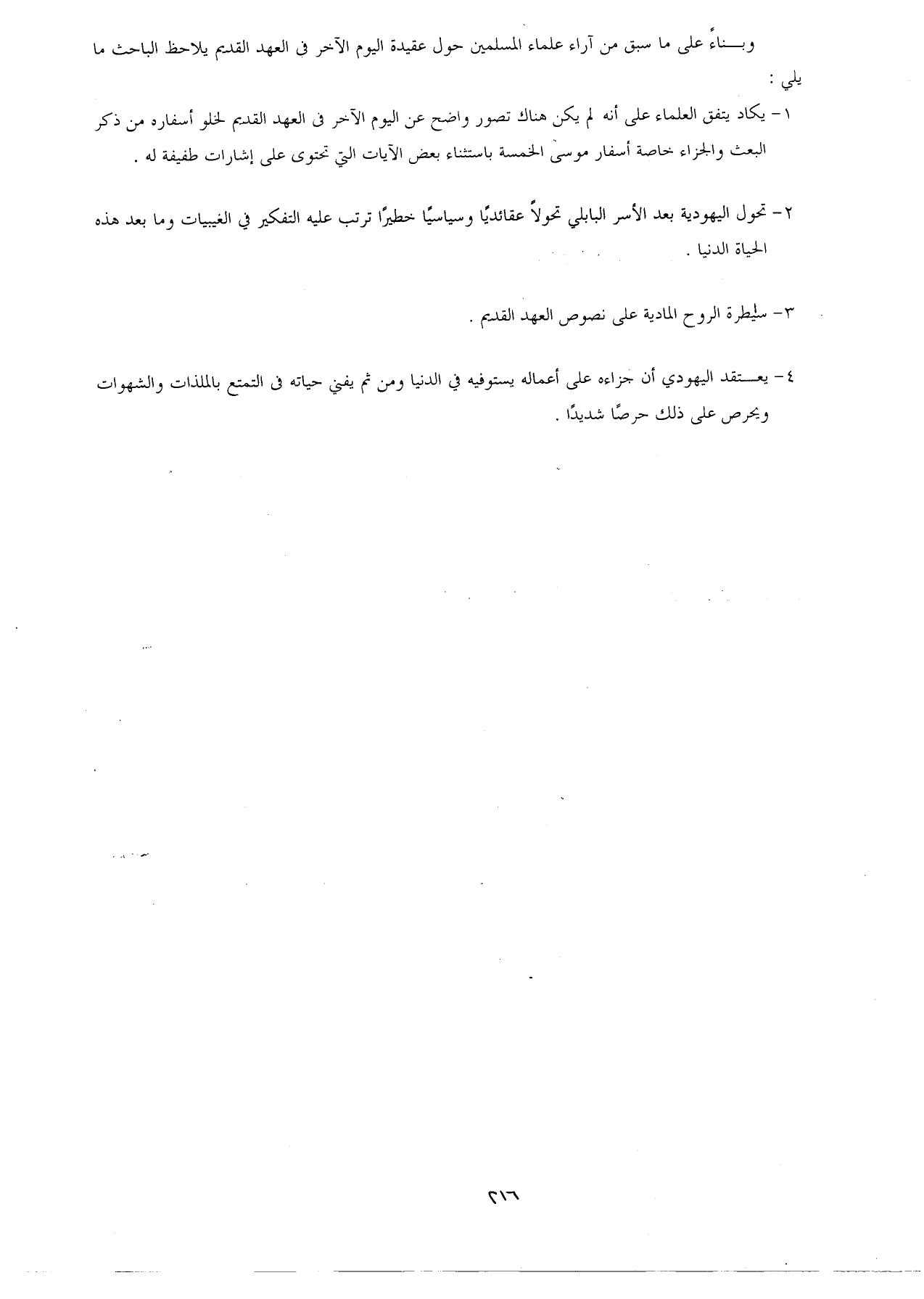 وبناءً على ما سبق من آراء علماء المسلمين حول عقيدة اليوم الآخر في العهد القديم يلاحظ الباحث ما يلي: