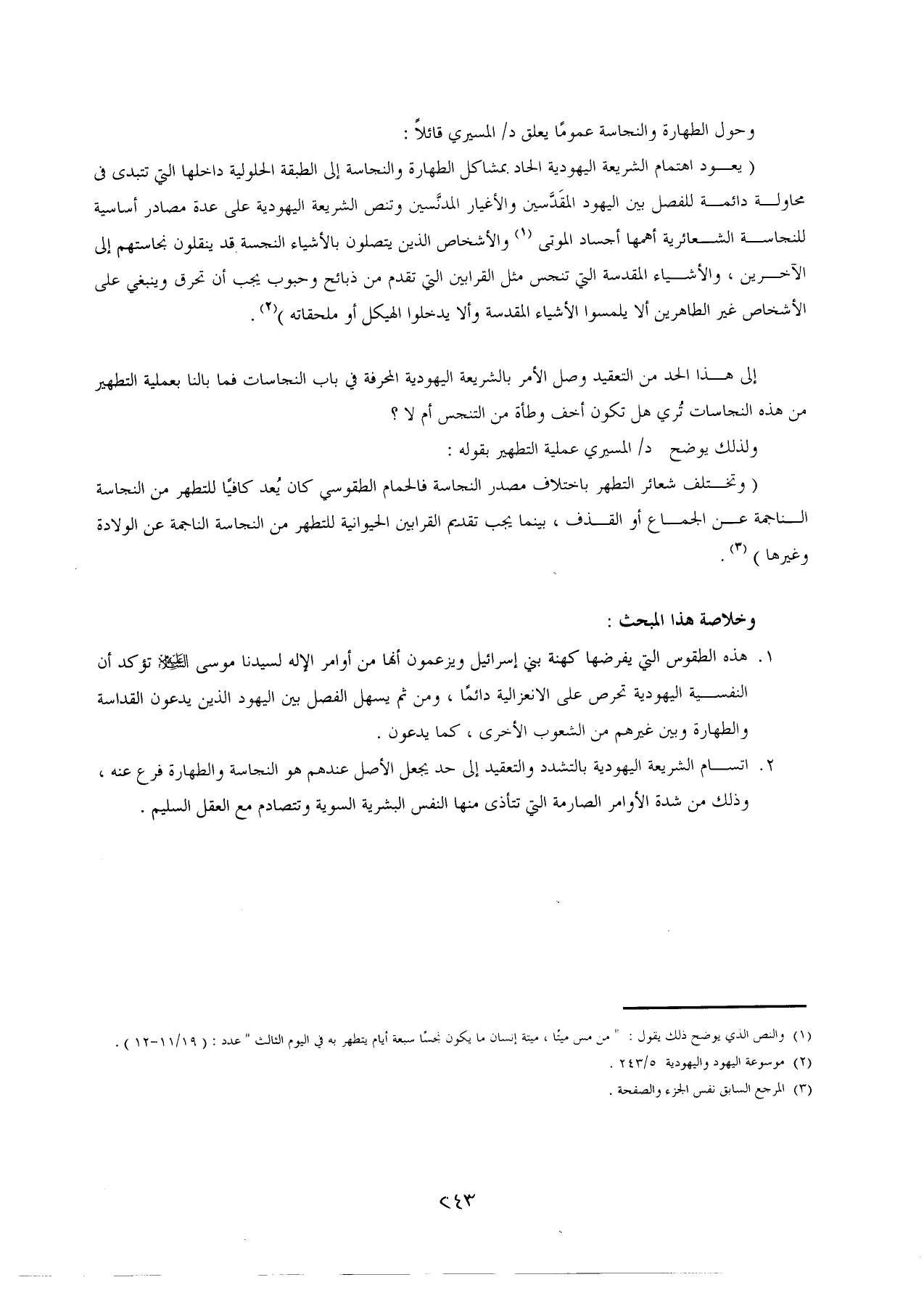 إلى هذا الحد من التعقيد وصل الأمر بالشريعة اليهودية المحرفة في باب النجاسات فما بالنا بعملية التطهير من هذه النجاسات تُري هل تكون أخفى وطأة من التنجس أم لا؟