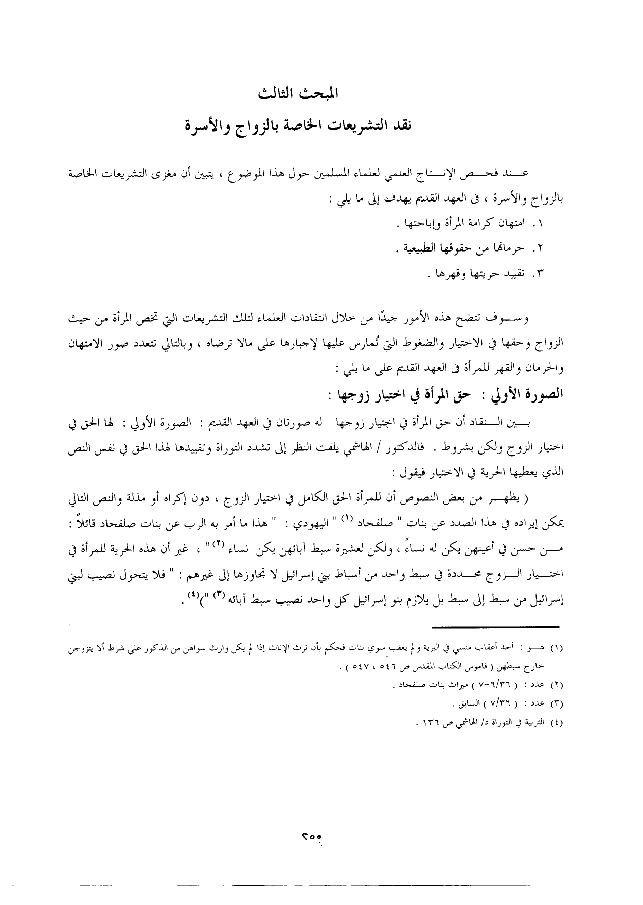 المبحث الثالث نقد التشريعات الخاصة بالزواج والأسرة