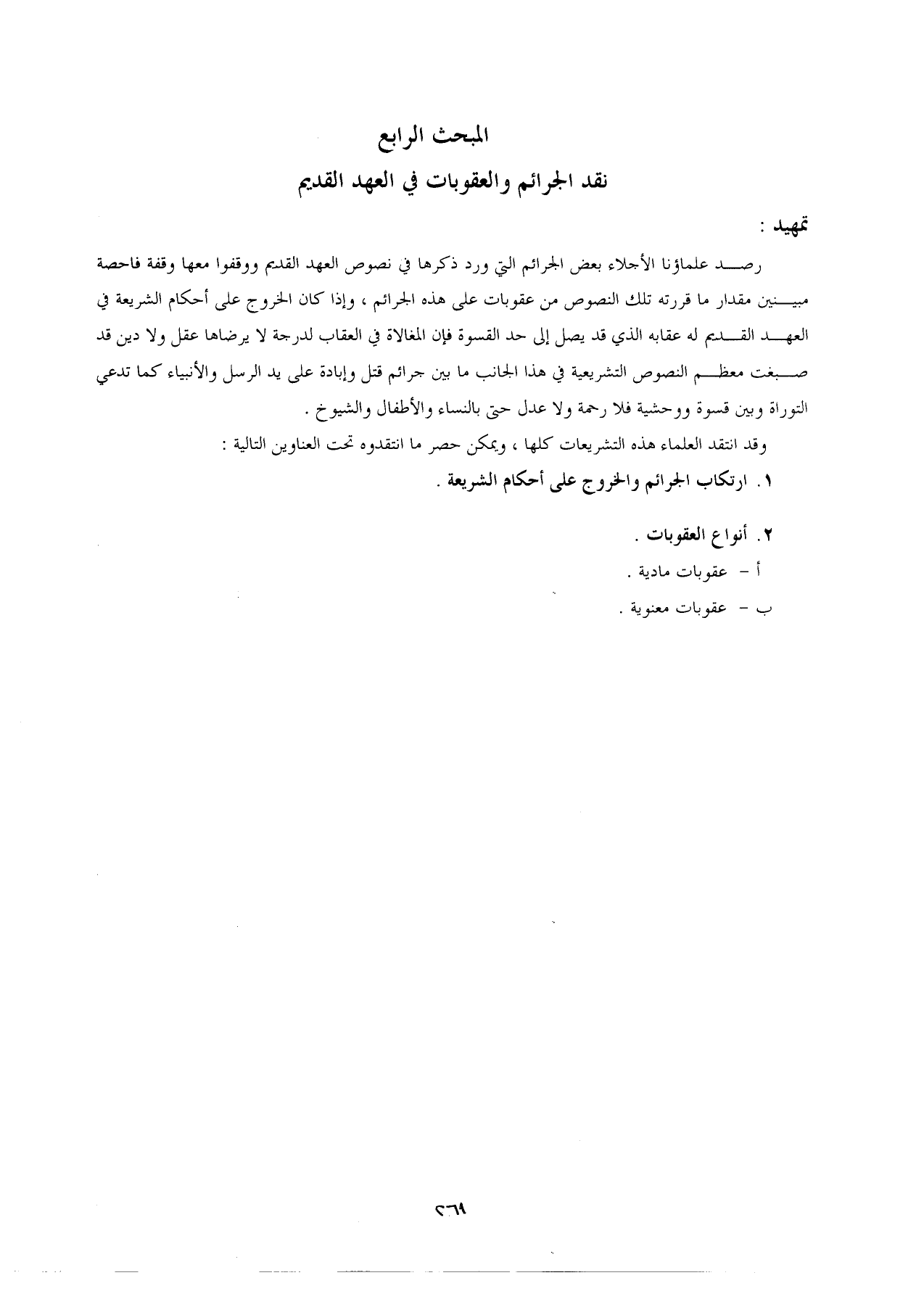 المبحث الرابع نقد الجرائم والعقوبات في العهد القديم