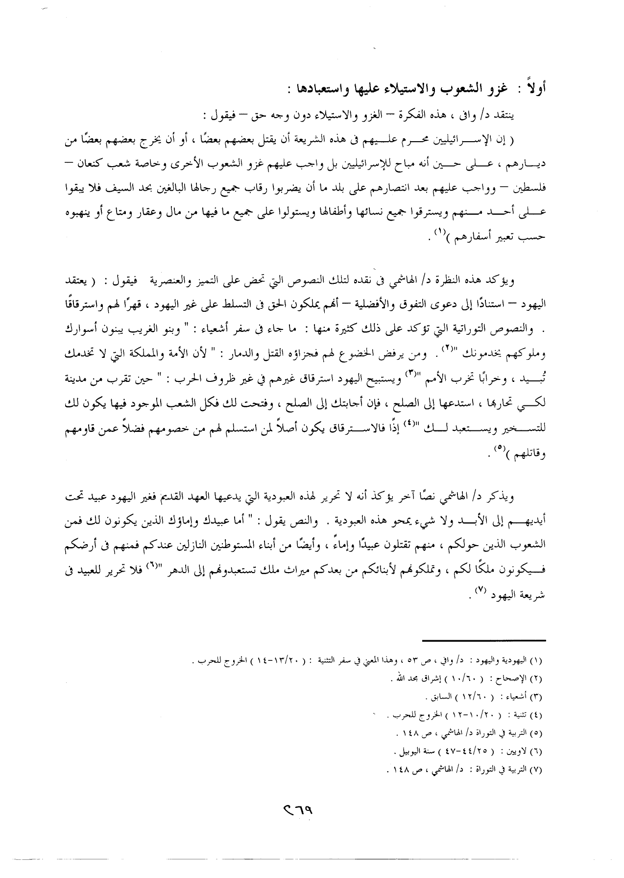 (¬1) اليهودية واليهود: د/ وافي، ص 53، وهذا المعني في سفر التثنية: (20/ 13 - 14) الخروج للحرب.
