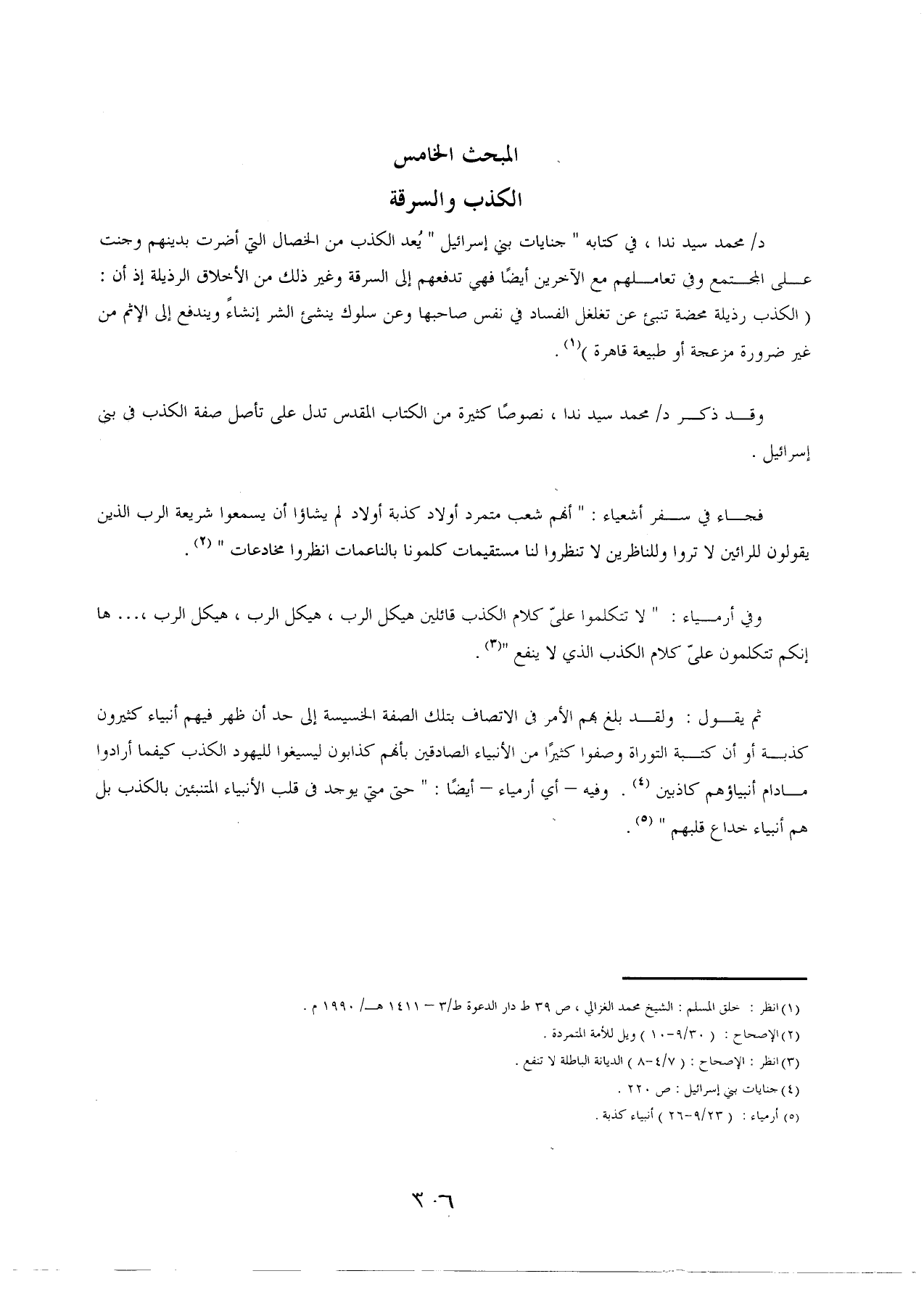 وقد ذكر د/ محمَّد سيد ندا، نصوصًا كثيرة من الكتاب المقدس تدل على تأصل صفة الكذب في بني إسرائيل.