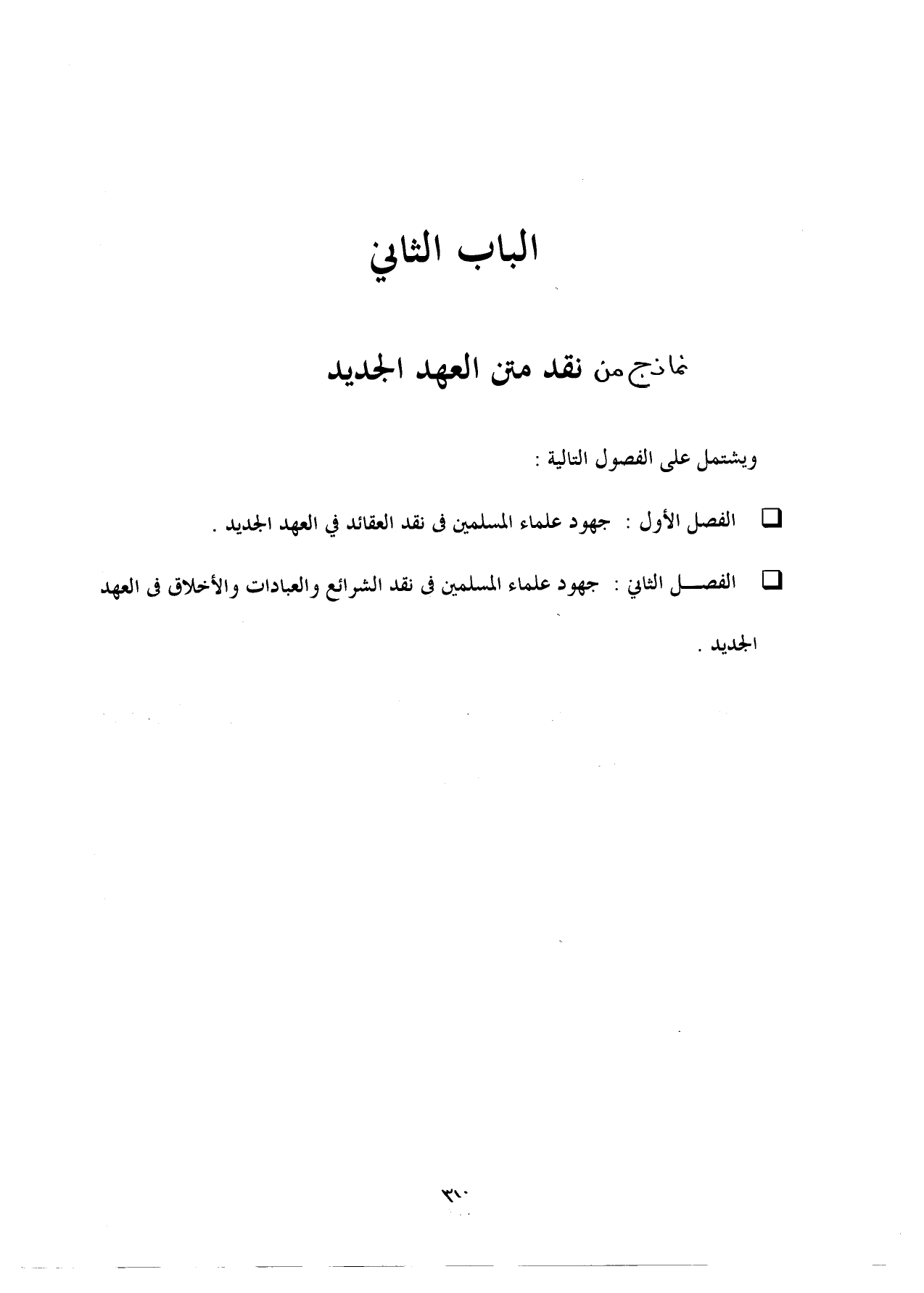 * الفصل الثاني: جهود علماء المسلمين في نقد الشرائع والعبادات والأخلاق في العهد الجديد.